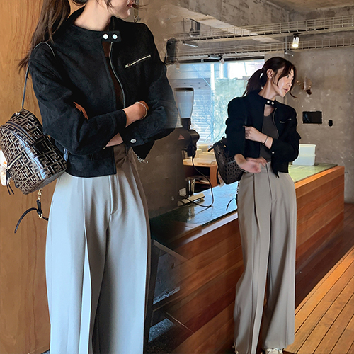 텐션좋은 스웨이드 원단에 스탠다드한 핏이 더해져