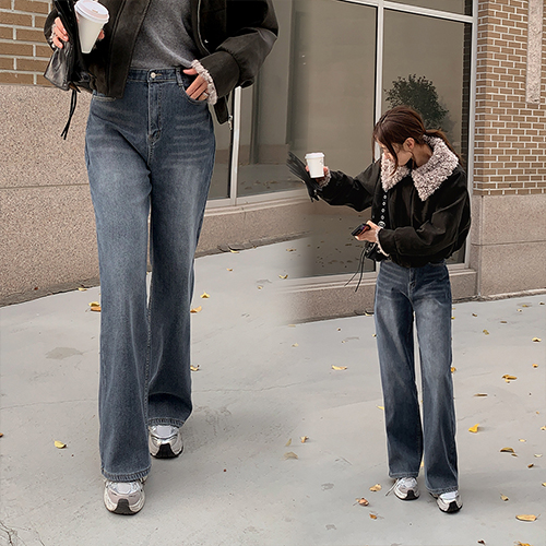은은한 세로 슬랍이 표현되어 슬림해보이며 전체적으로 균일한 스톤워싱에