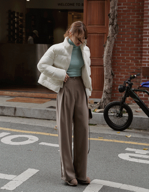 - 옆태까지 섬세한 디테일이 들어가 어떤 각도에서 봐도 예쁜 와이드 팬츠예요:) 어떤 상의와 매치해도 멋스럽구요 한겨울 필수소재, 안감기모가 깔려 바람을 안정적으로 막아준답니다