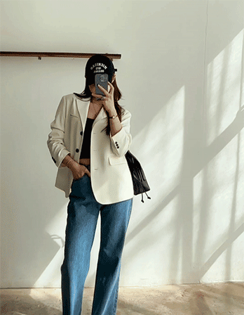 - 여유로운 핏이지만 그렇다고 너무 오버한 핏은 아닌, 너무 정핏도 아닌 세미오버핏 자켓이예요 그래서 좀 더 세련되게 착용되면서 군더더기없는 디자인이라 데일리룩으로 어디든 잘 매치가 가능한 테일러드 자켓이랍니다:)