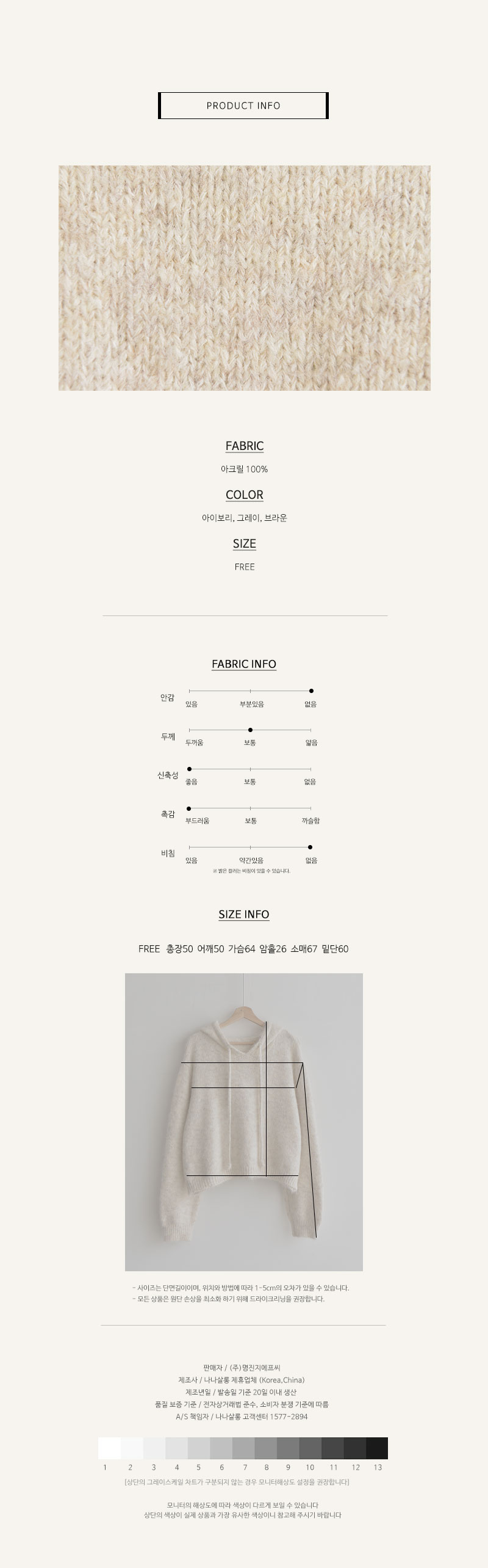 아크릴 100%의 원사로 짜여진 니트예요 포슬포슬 실사가