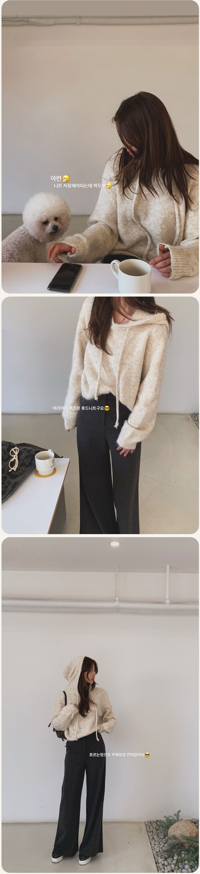 보송보송 포근하게 착용되는 후드니트