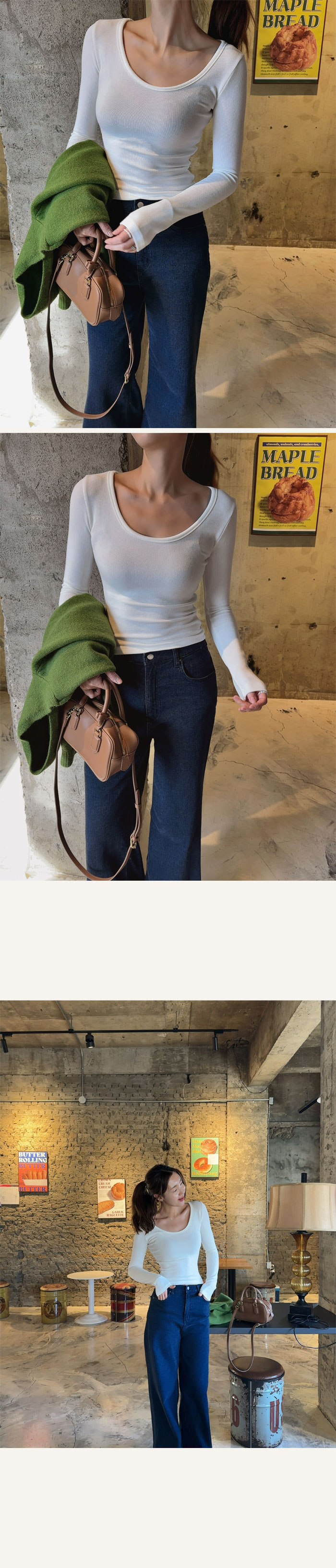 래글런 어깨라인으로 어깨 부각을 최소화해 부해 보임을 줄여 주었구요
