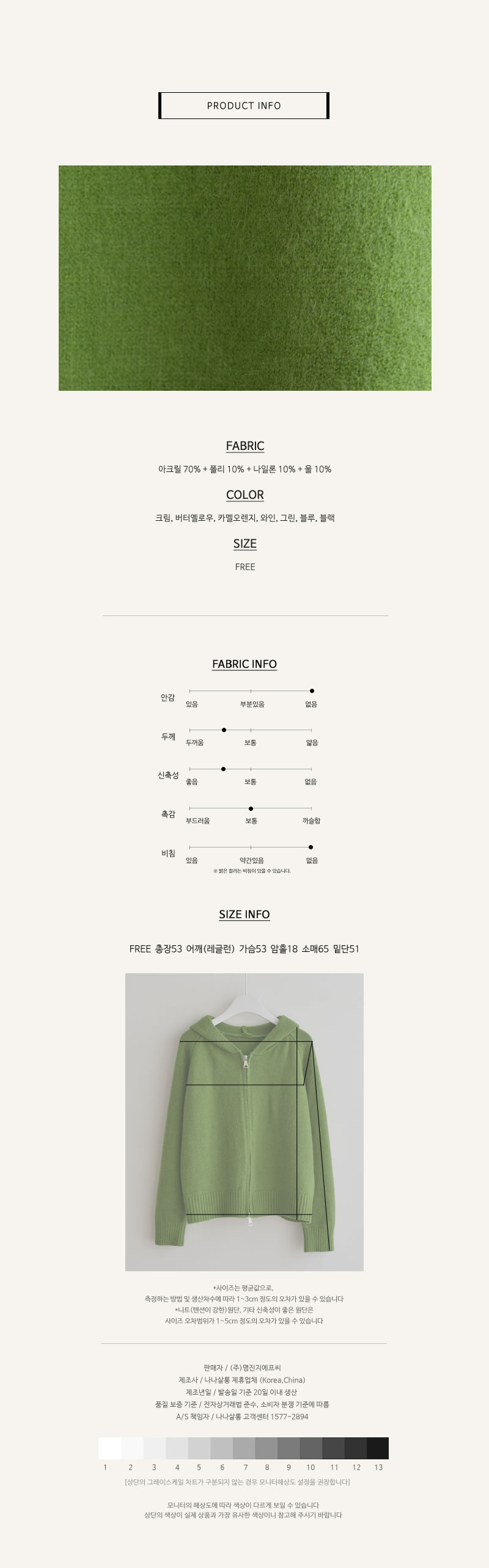 FREE사이즈의 니트집업이예요