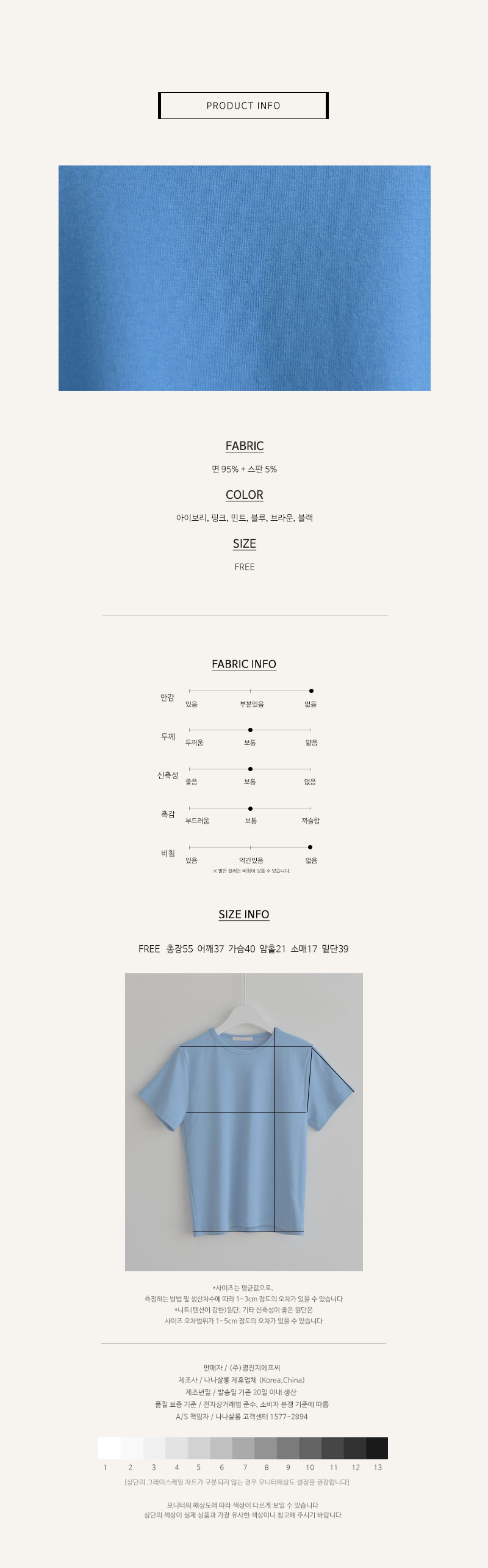FREE사이즈의 티셔츠예요