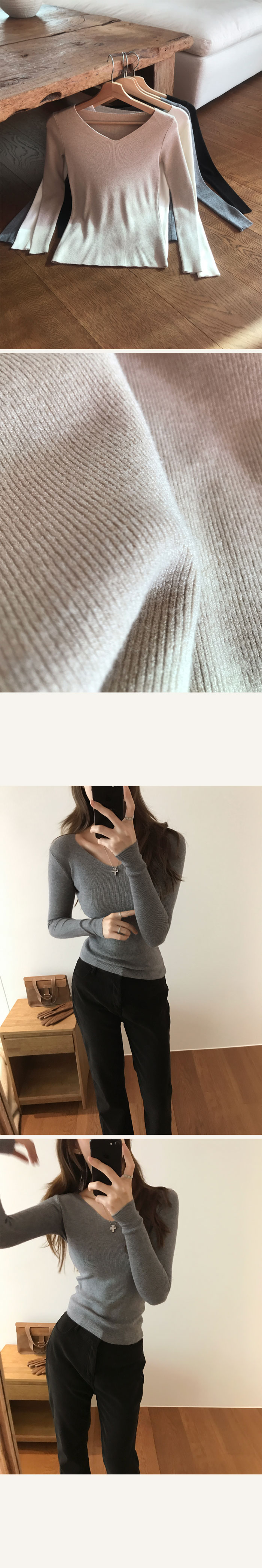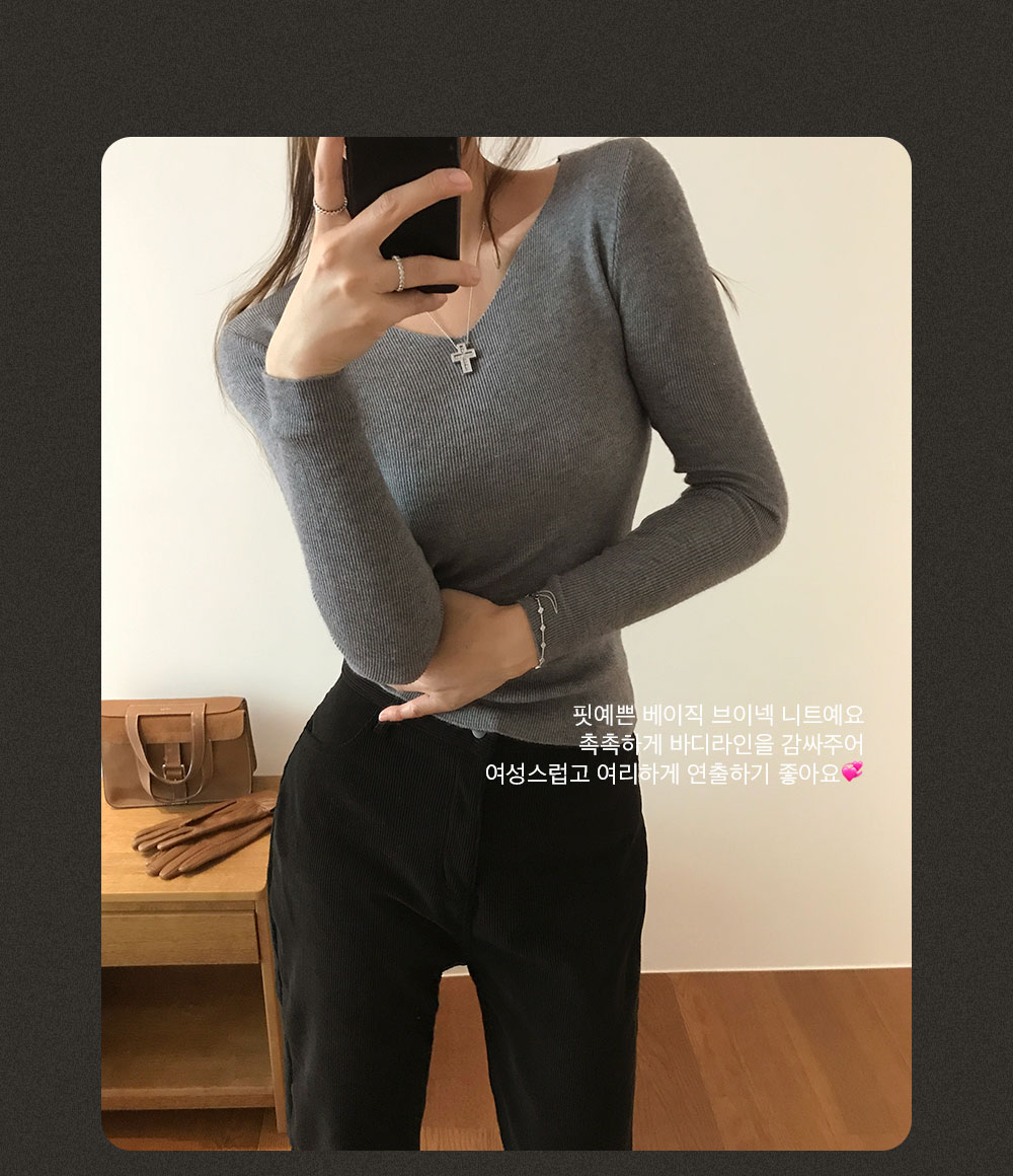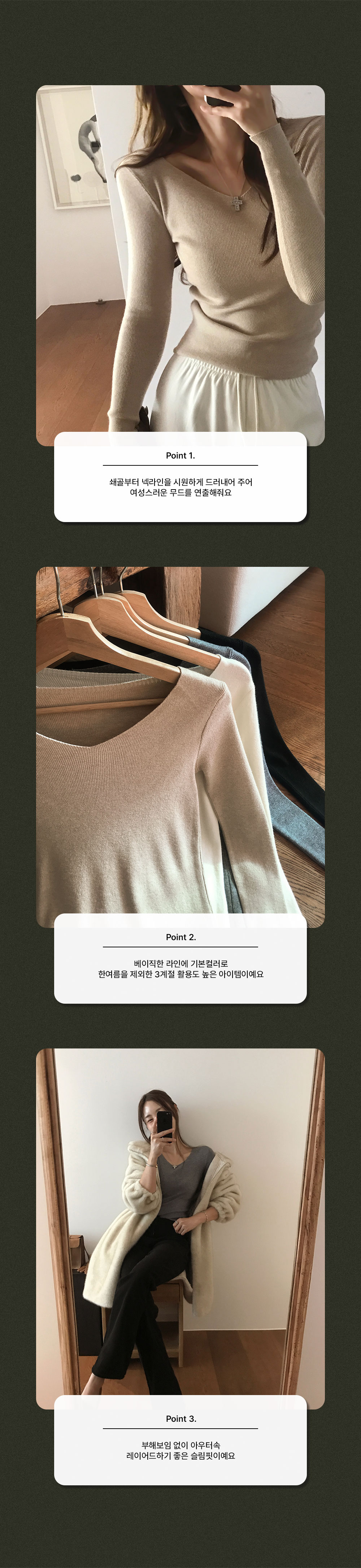 시원스레 파인 브이넥 으로 목선도 예뻐보일 뿐만 아니라