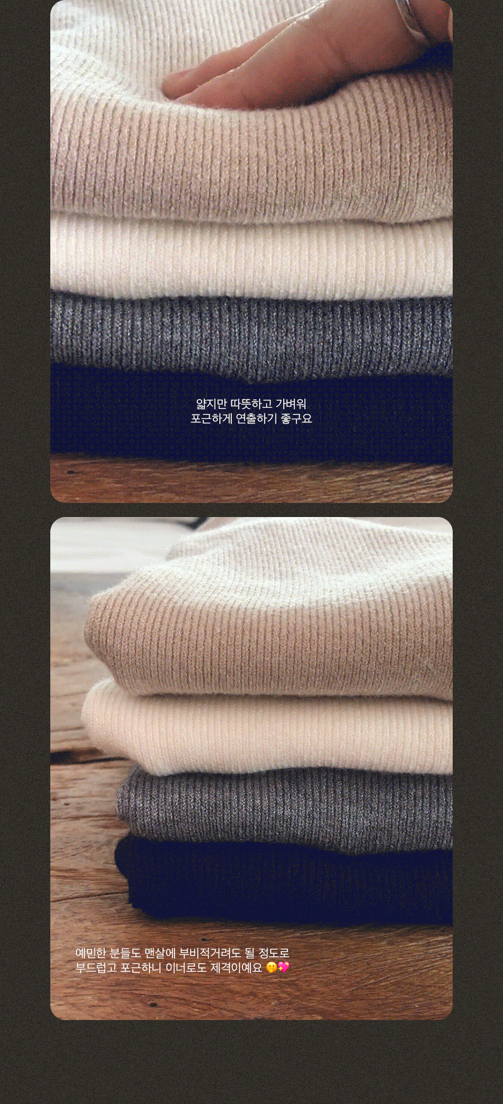 맨살에 부비적 거려도 될 정도로 아주 부드러운 소재라 이너 니트