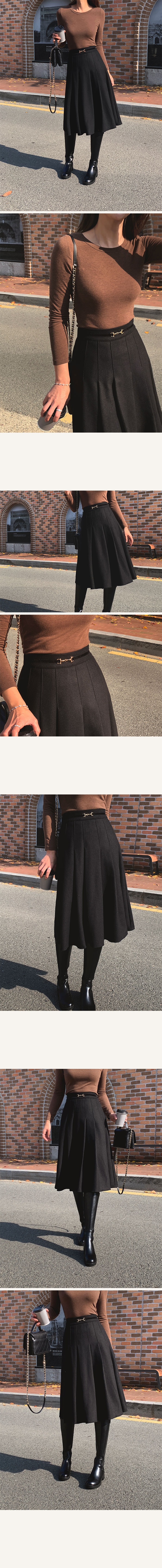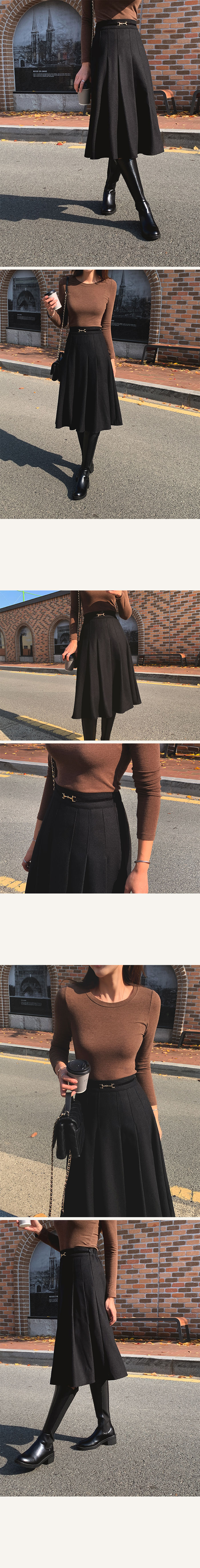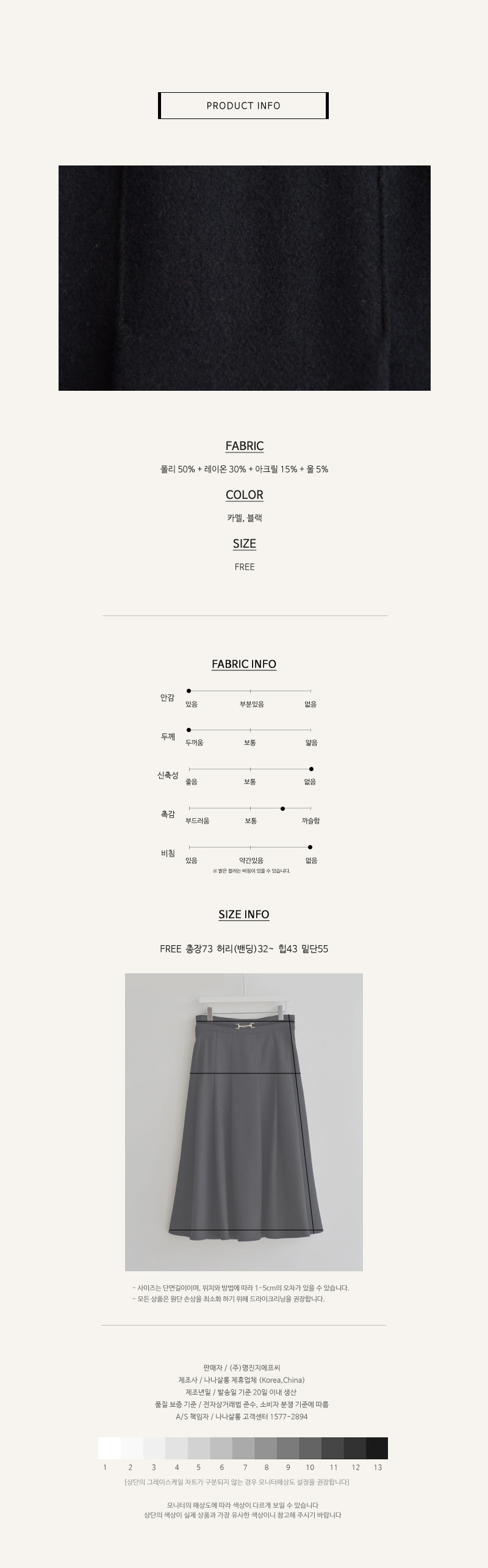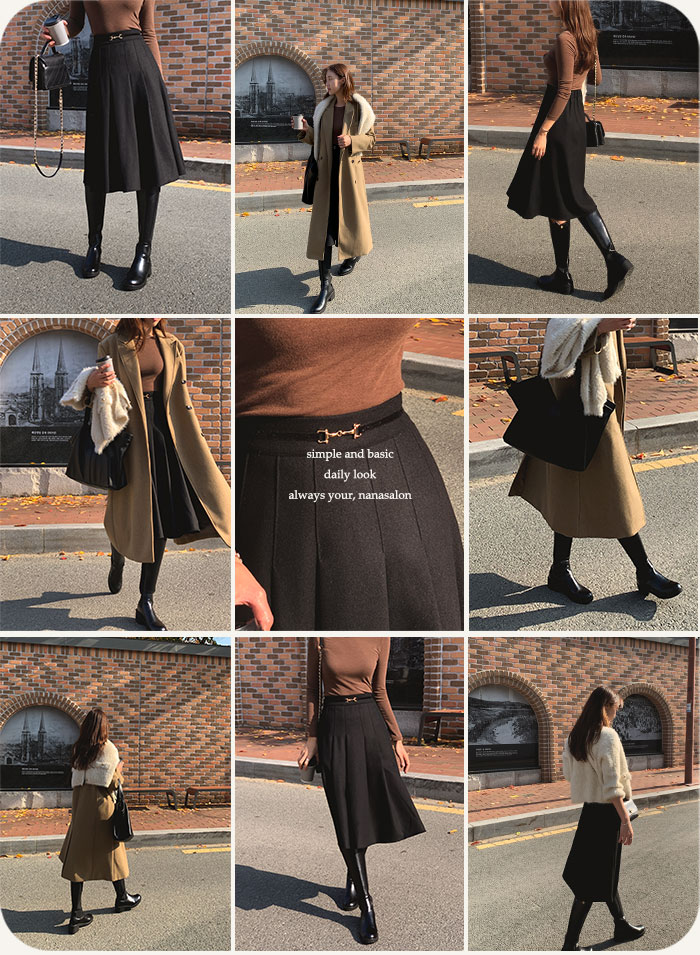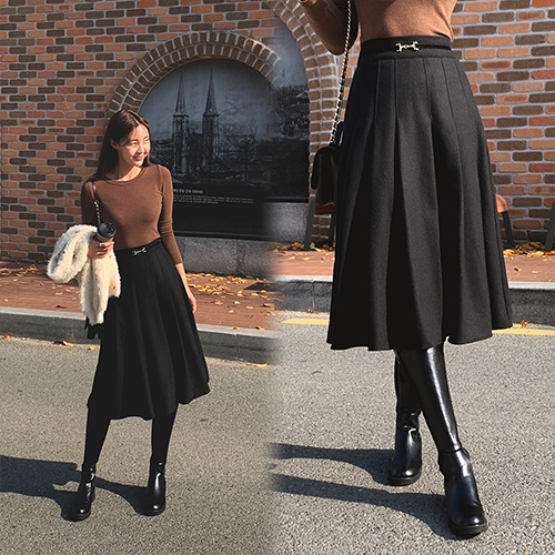 연출되는 스커트예요 무릎을 살짝 덮는 정도의 긴 기장으로
