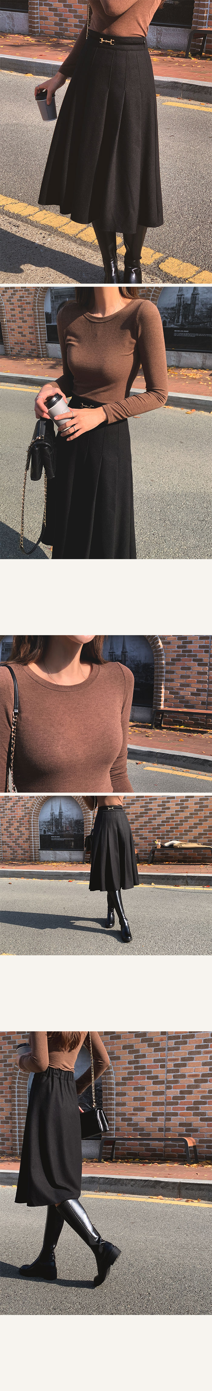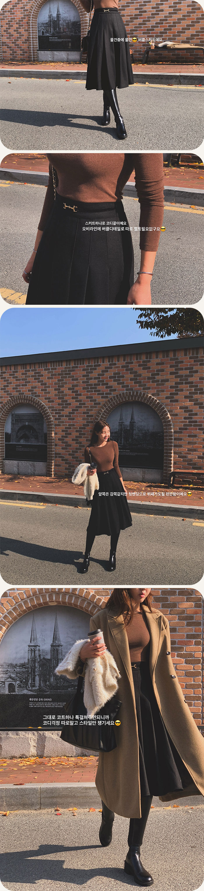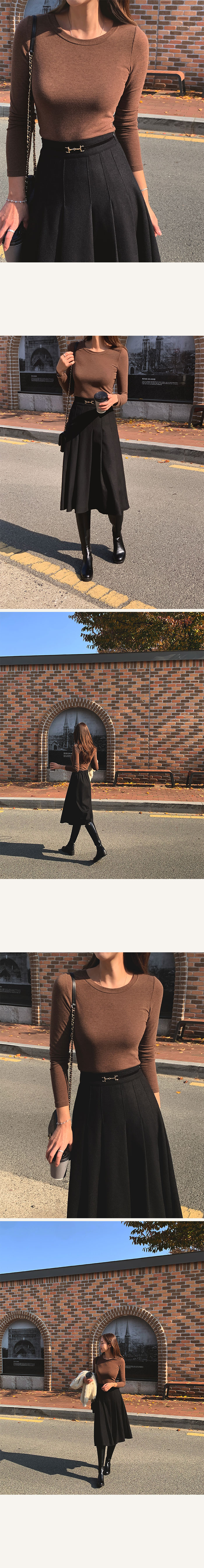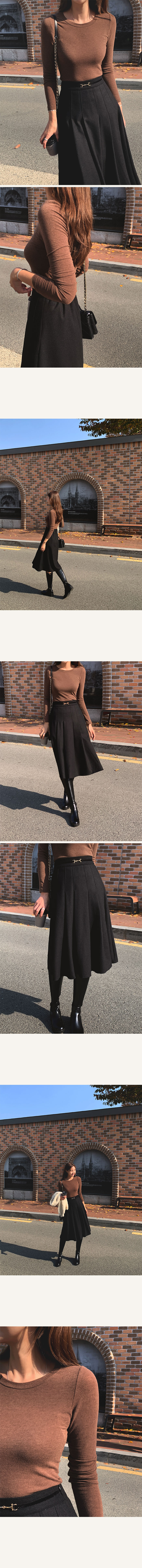 연출되는 스커트예요 무릎을 살짝 덮는 정도의 긴 기장으로