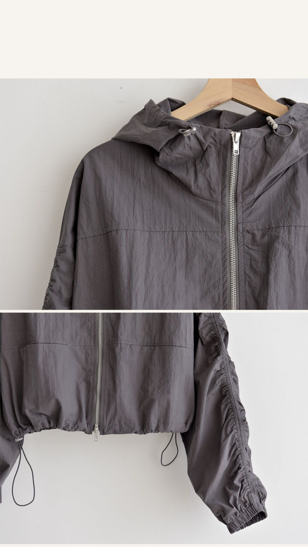 밑단 스트링이 들어가 봉봉하게 떨어지는 실루엣에