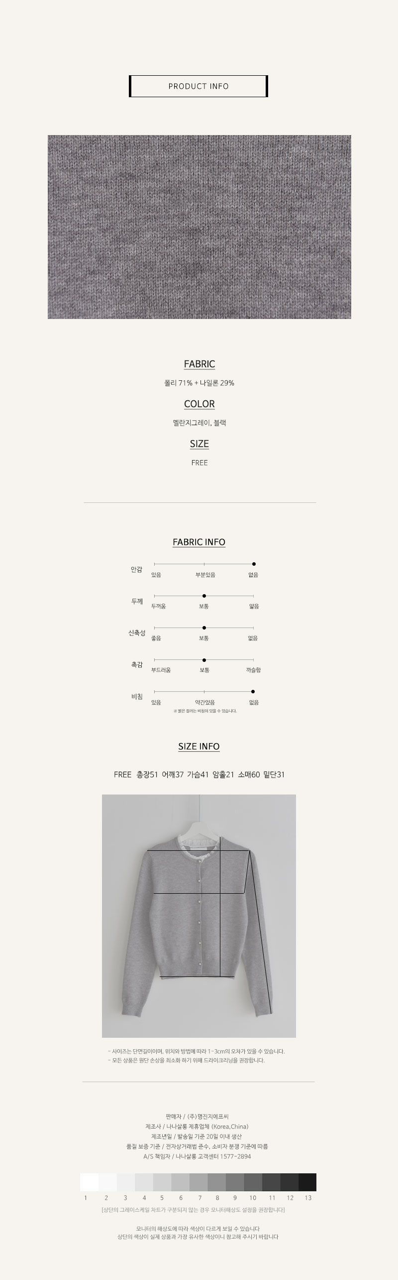부드럽고 유연한 원단으로 편안하게 착용되는 가디건이예요