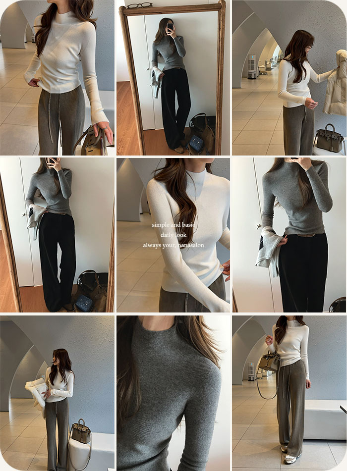 밑위가 긴 하이웨이스트 라인에 여유있는 기장감으로 다리 라인이 길어 보이며