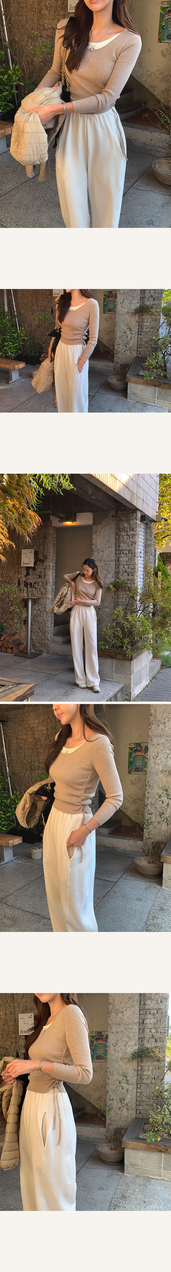 그 밑으로는 여유있는 와이드핏으로 죄임없이 편안하게 착용되었어요