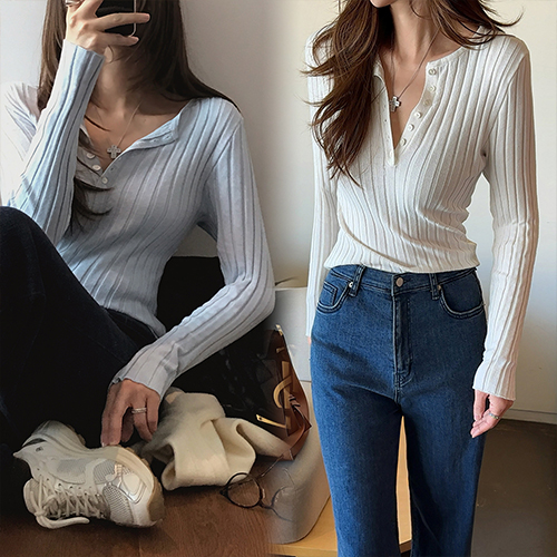 브이넥 라인이 은근한 여릿함을 더해줘서