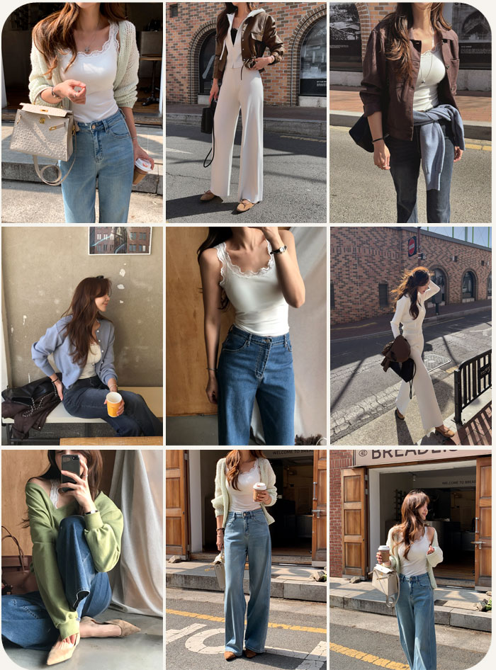 과하지않은 부츠컷 라인으로 여성스러운 실루엣을 연출해주며