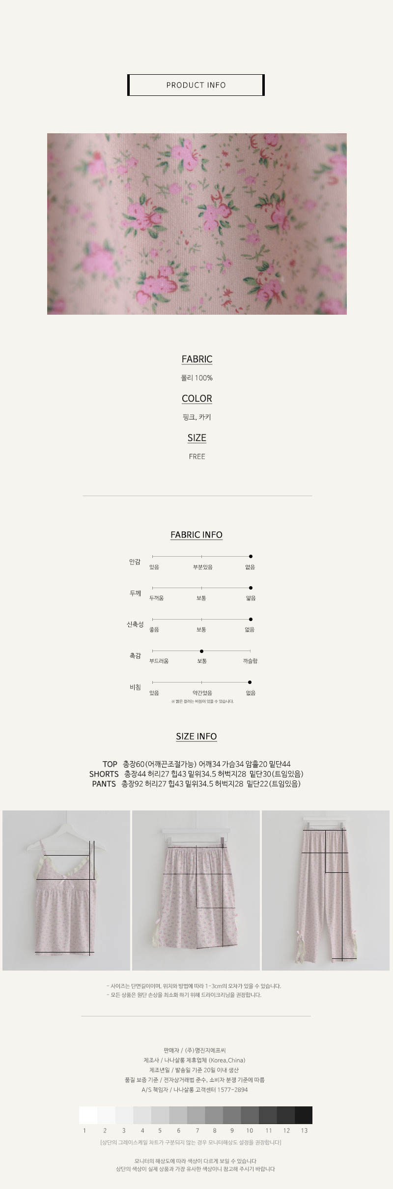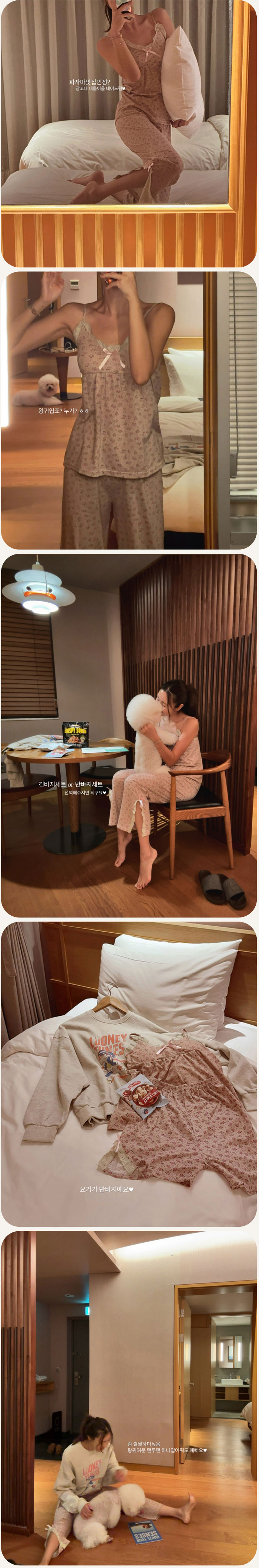 사랑스러운 컬러감의 파자마 세트예요