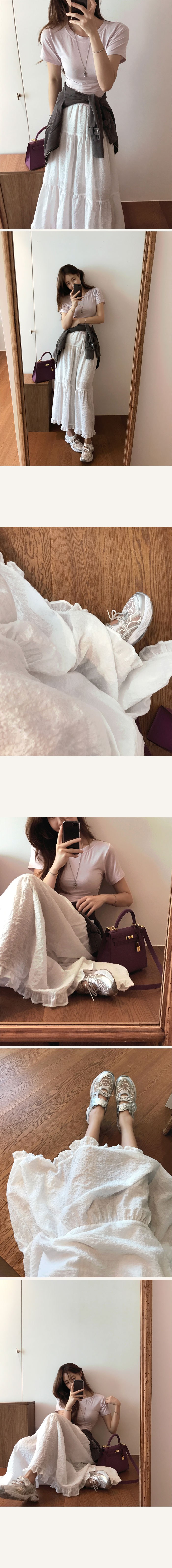 허리 절개선 밑으로는 과하지 않게 플레어 진 스커트 라인인데
