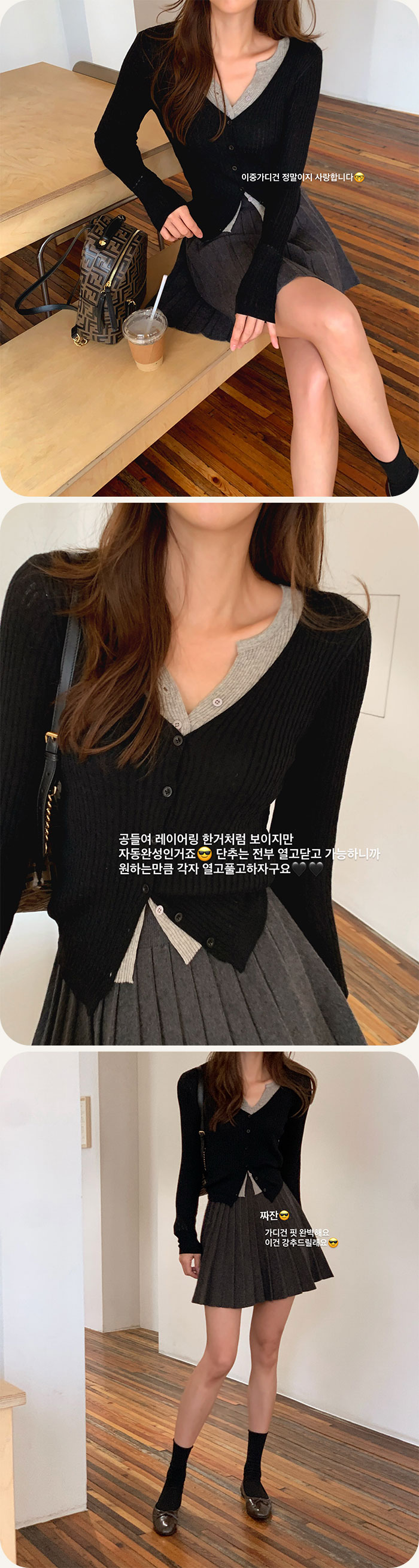 니트를 두겹 레이어드한 듯 보여지는 가디건이예요