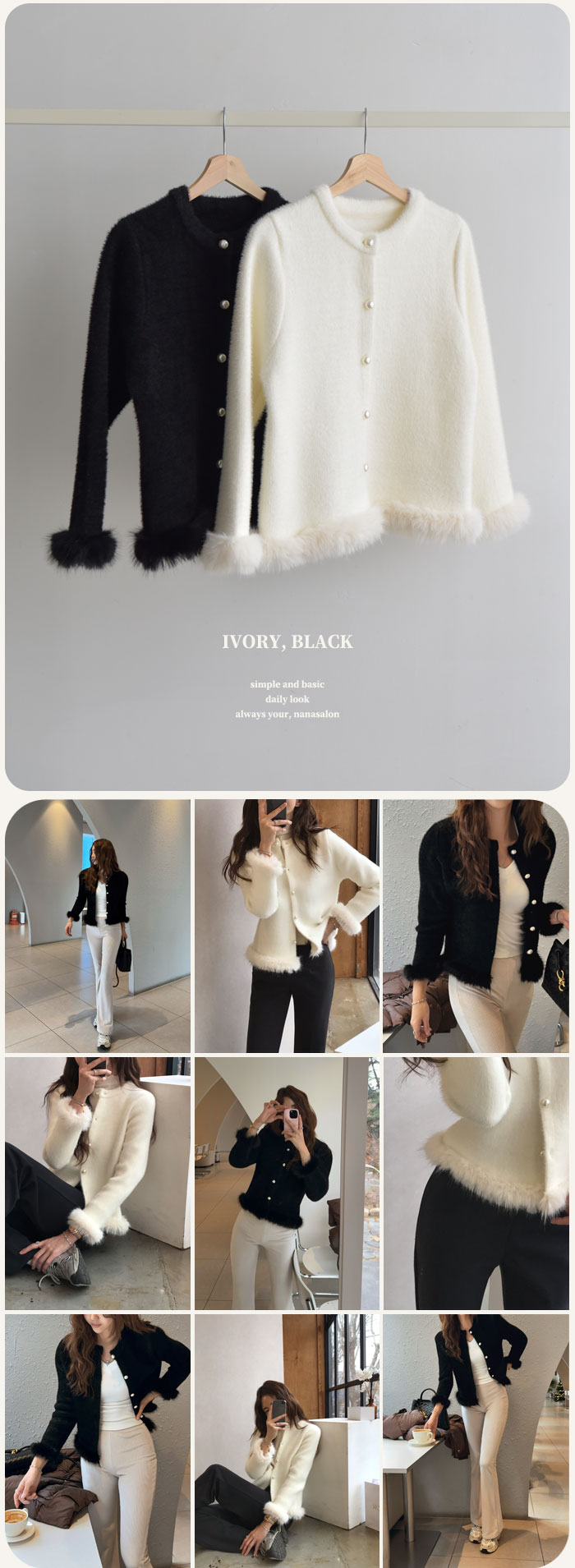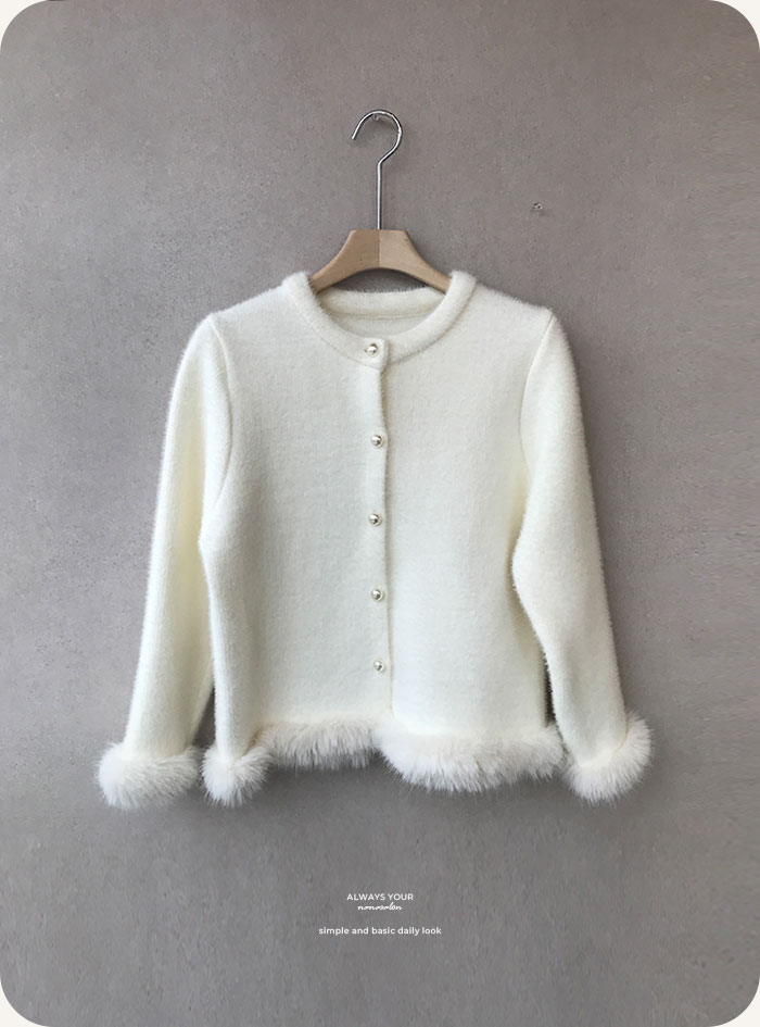 부드러운 헤어리 텍스처가 포인트인 퍼 니트 가디건을 소개할게요