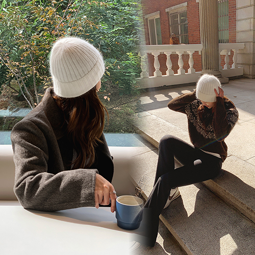 얼굴선을 부드럽게 감싸주는 실루엣이 인상적인 앙고라 비니예요