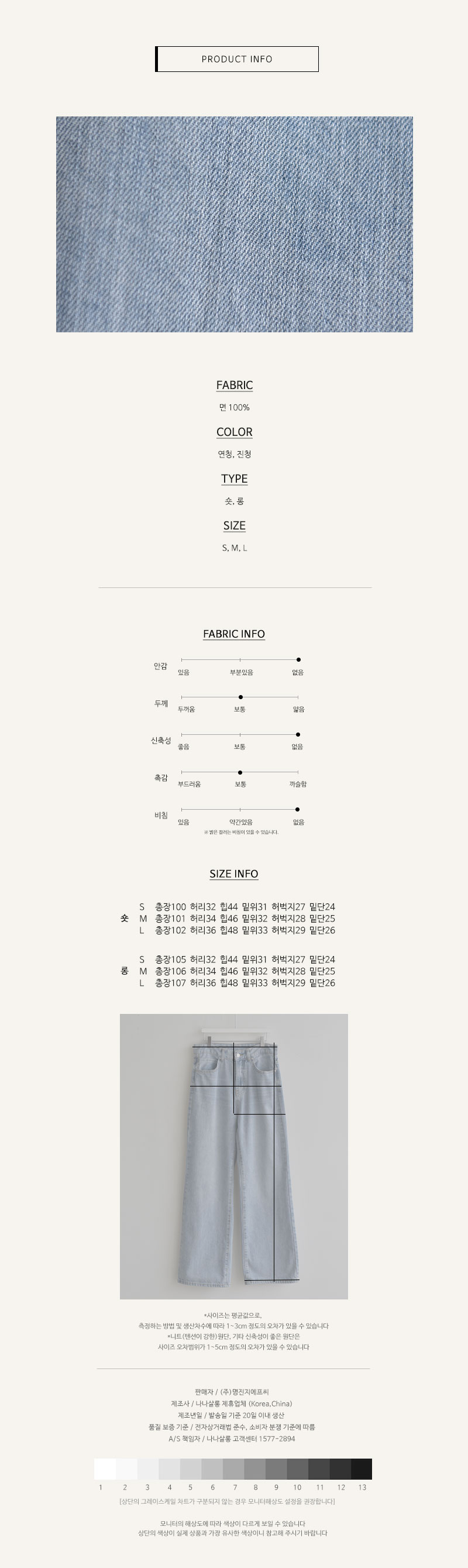 [기장별] 클로스 스트레이트 데님 PANTS