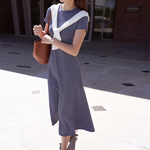 간편하면서도 세련되게 착용되는 스트라이프원피스
