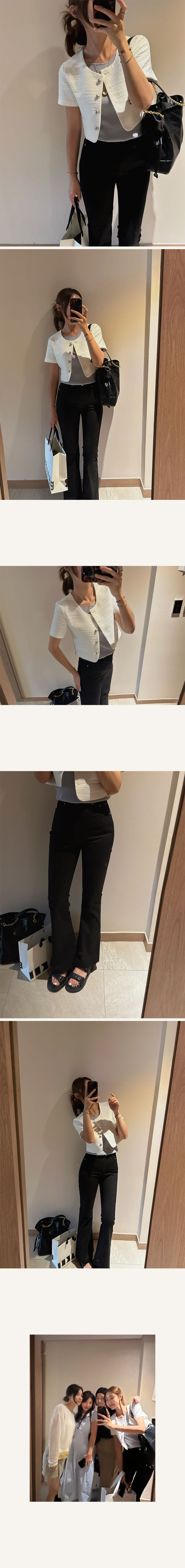 라운드넥으로 넥라인이 한결 시원스러워보이고 세미크롭기장으로