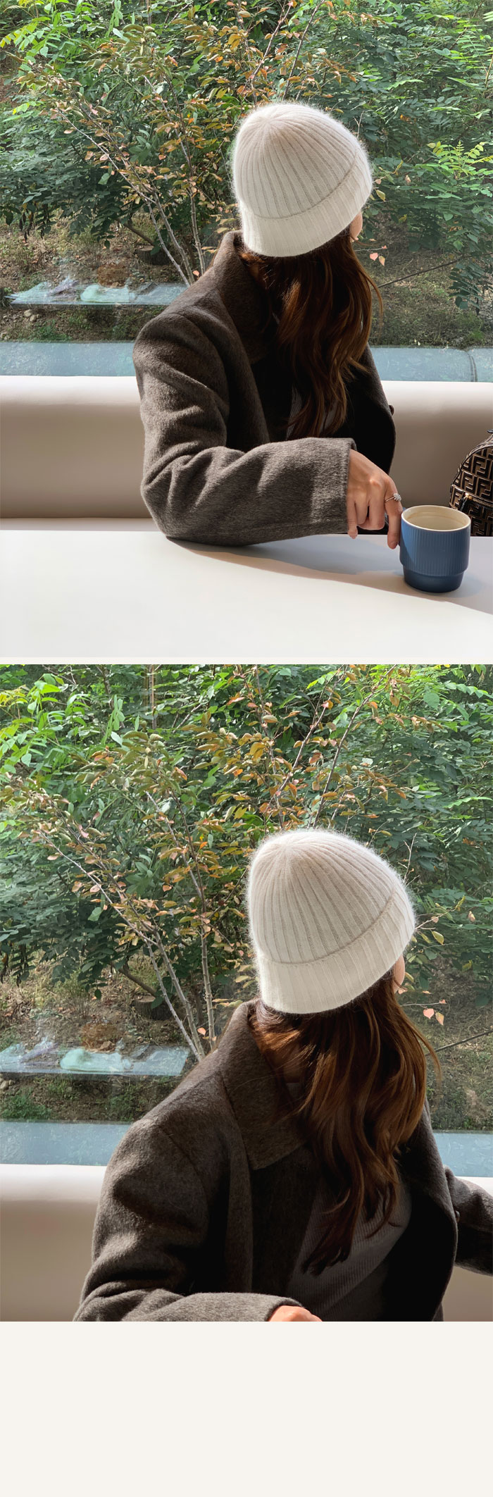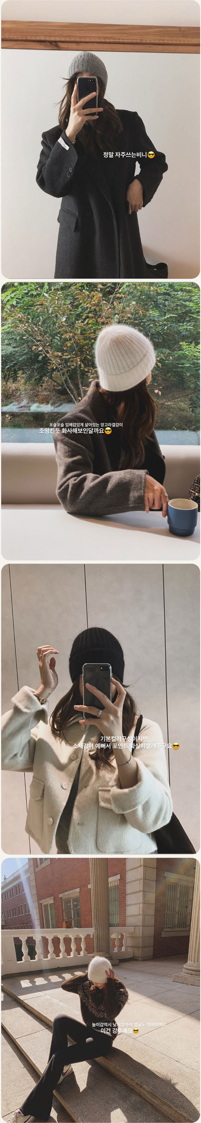 얼굴선을 부드럽게 감싸주는 실루엣이 인상적인 앙고라 비니예요