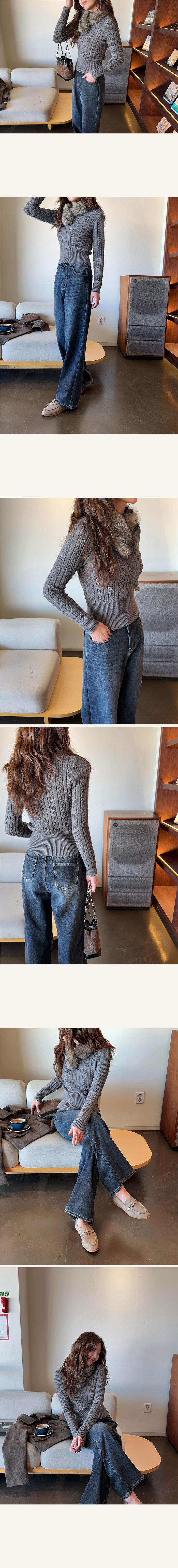 미니케이블 짜임에 깔끔한 라운드 넥으로 여성스러운 라인감이
