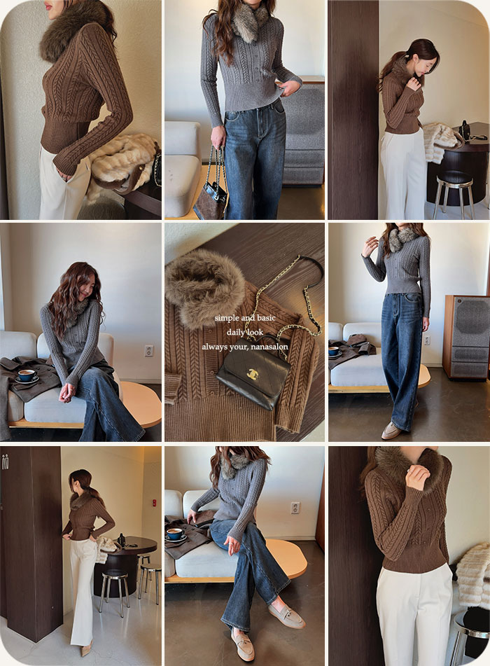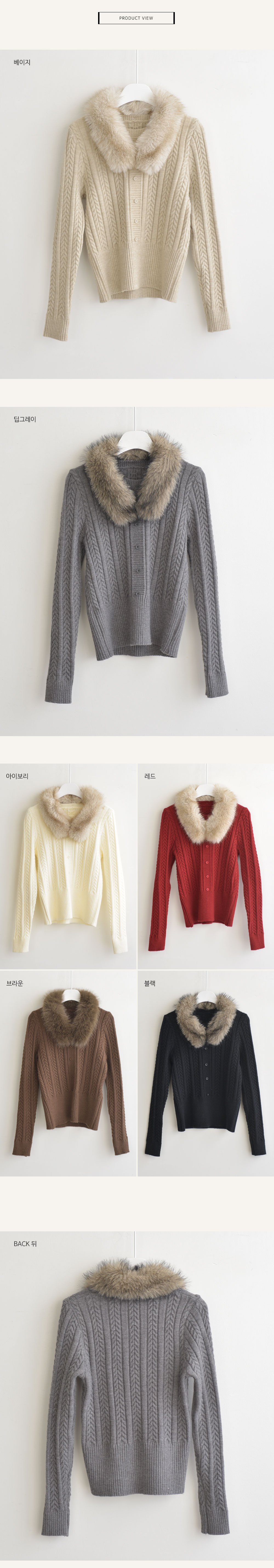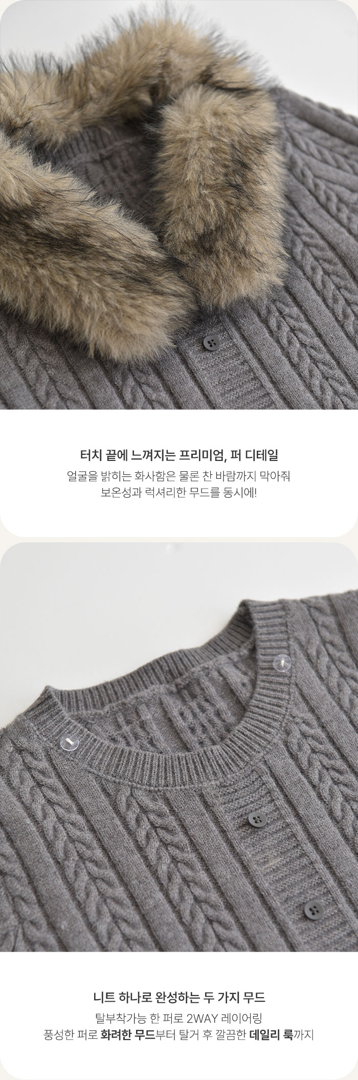 이 니트는 넥라인에 퍼가 작은 버튼으로 연결되어 탈부착할 수 있구요