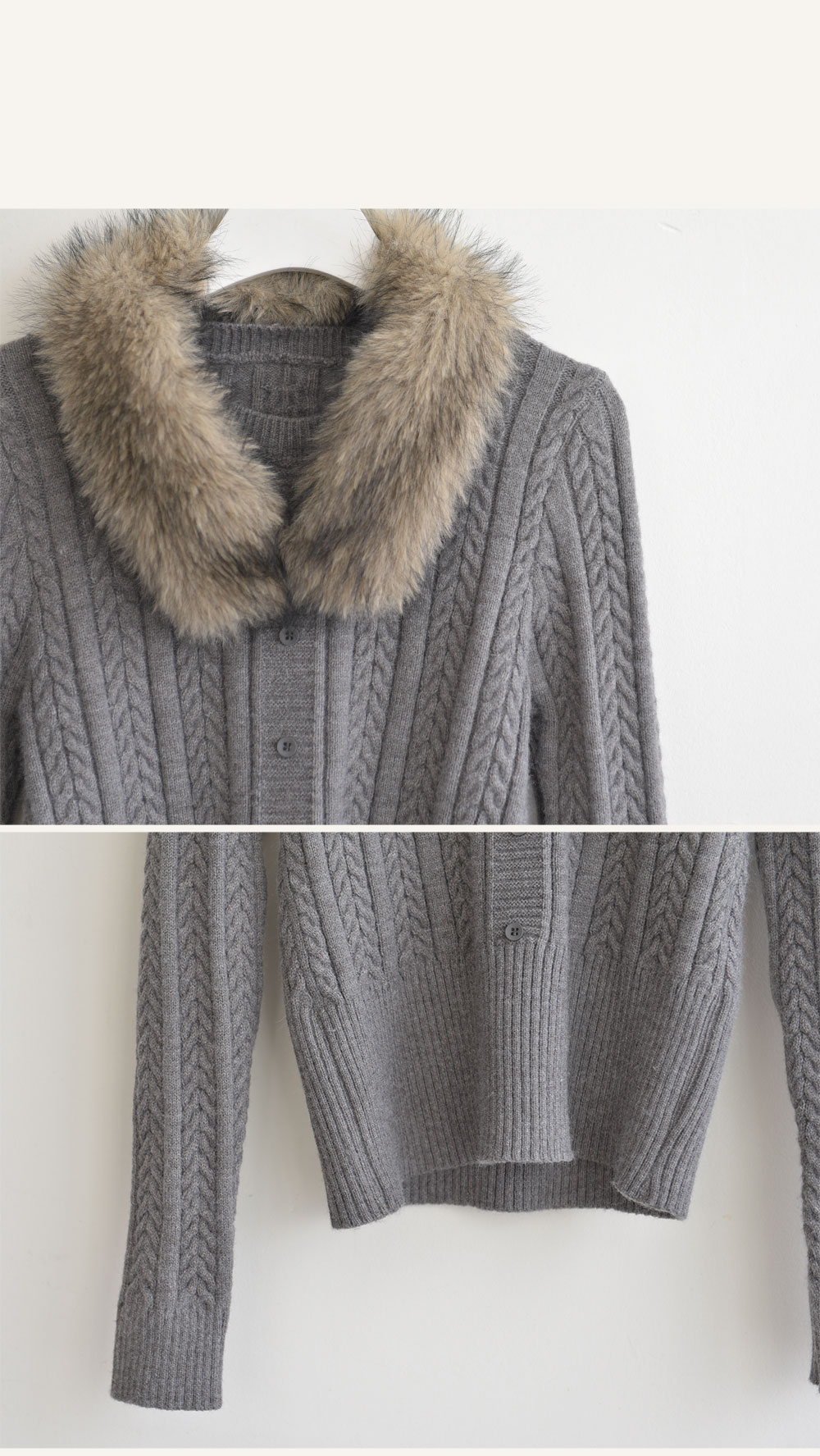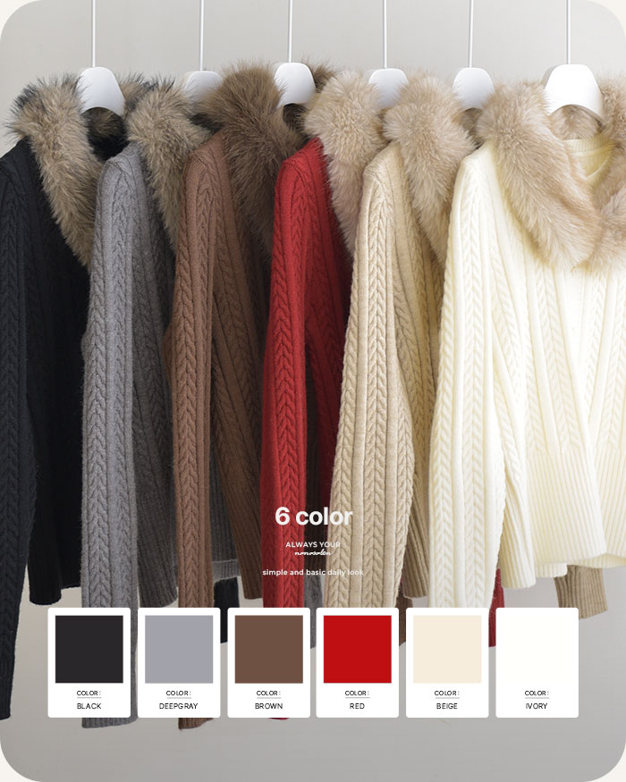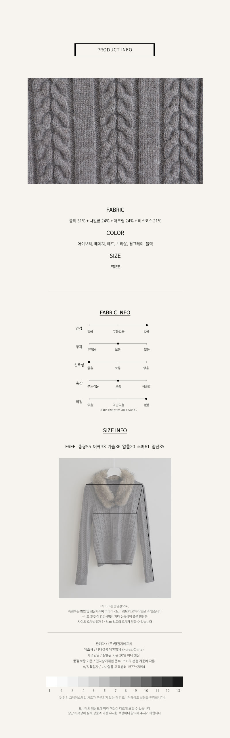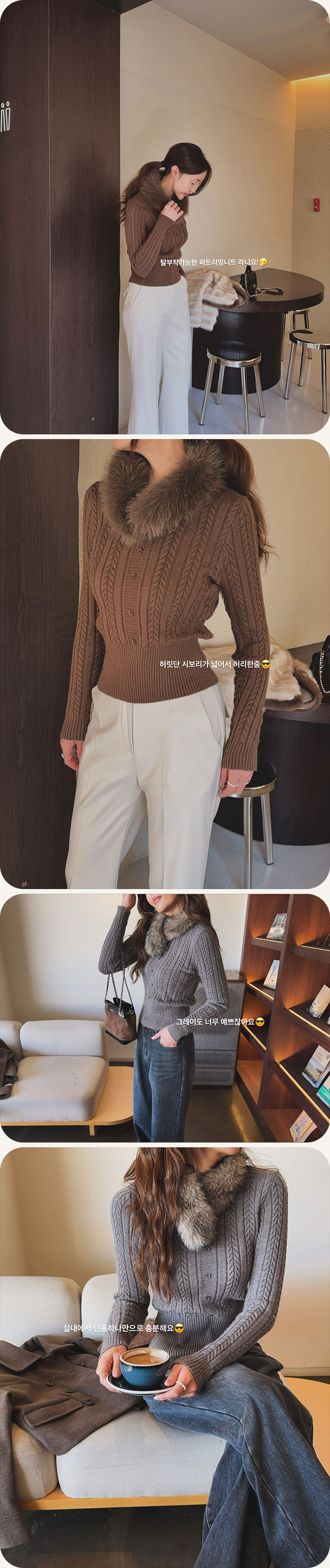 이 니트는 넥라인에 퍼가 작은 버튼으로 연결되어 탈부착할 수 있구요