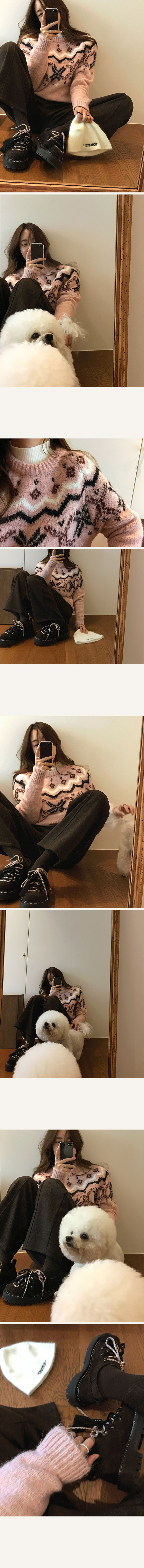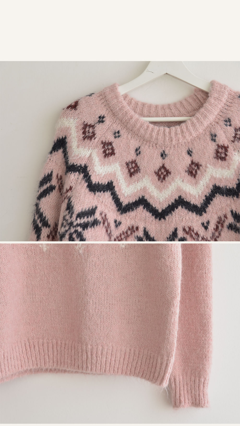 잔잔한 노르딕 패턴에 보송한 헤어리 텍스처가 어우러져