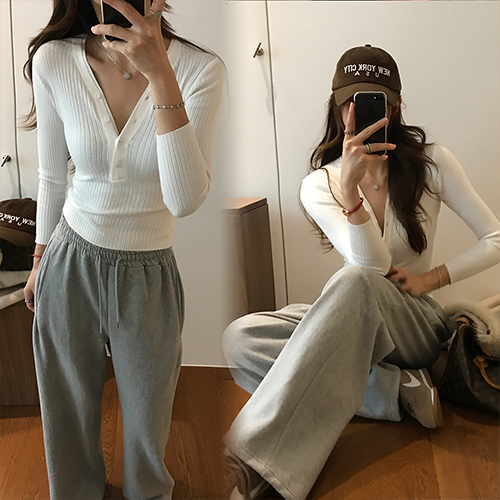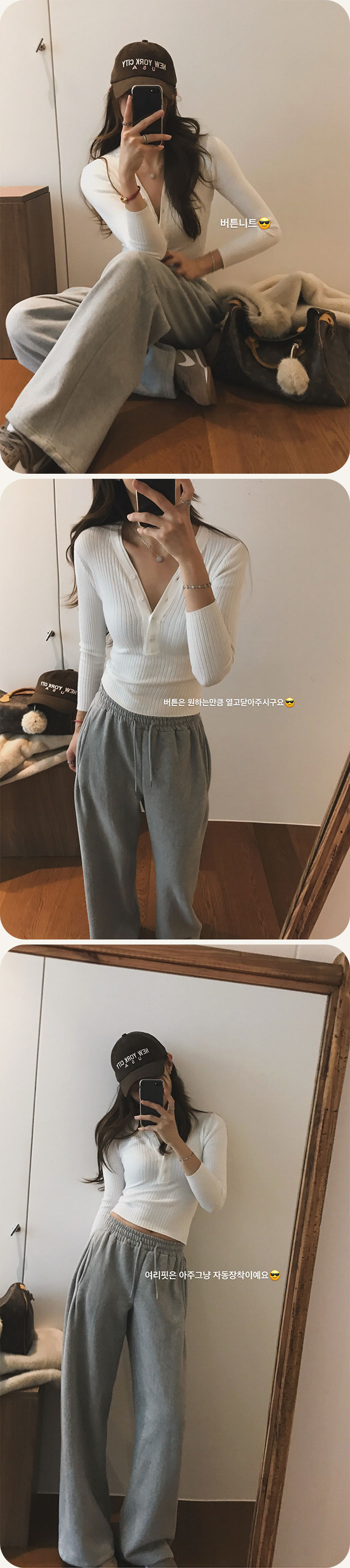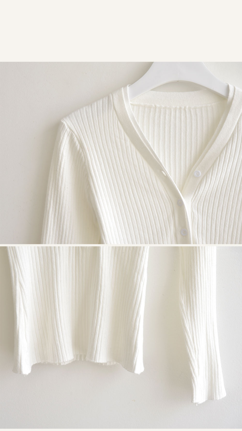 여리하고 가녀려보이는 골지 버튼디자인