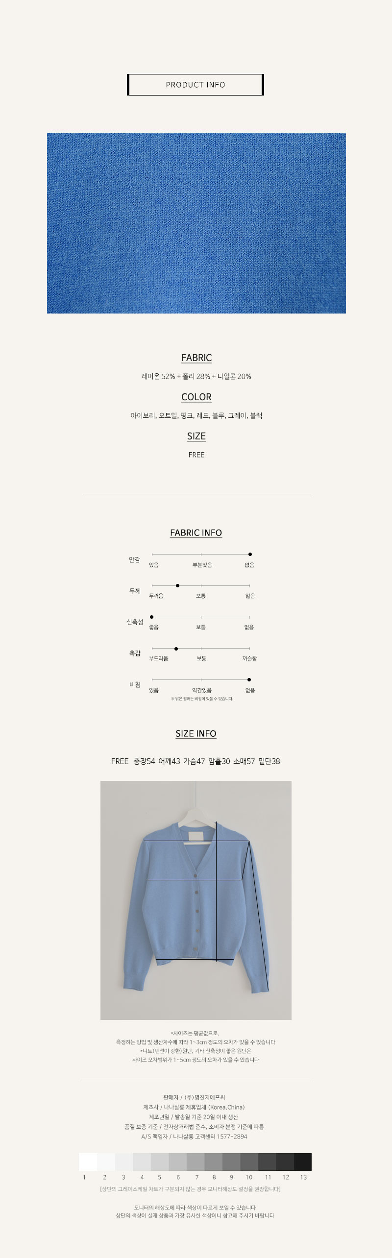 레이온52% 나일론20% 폴리28%가 블렌딩된 원단이예요 적당한 두께감에