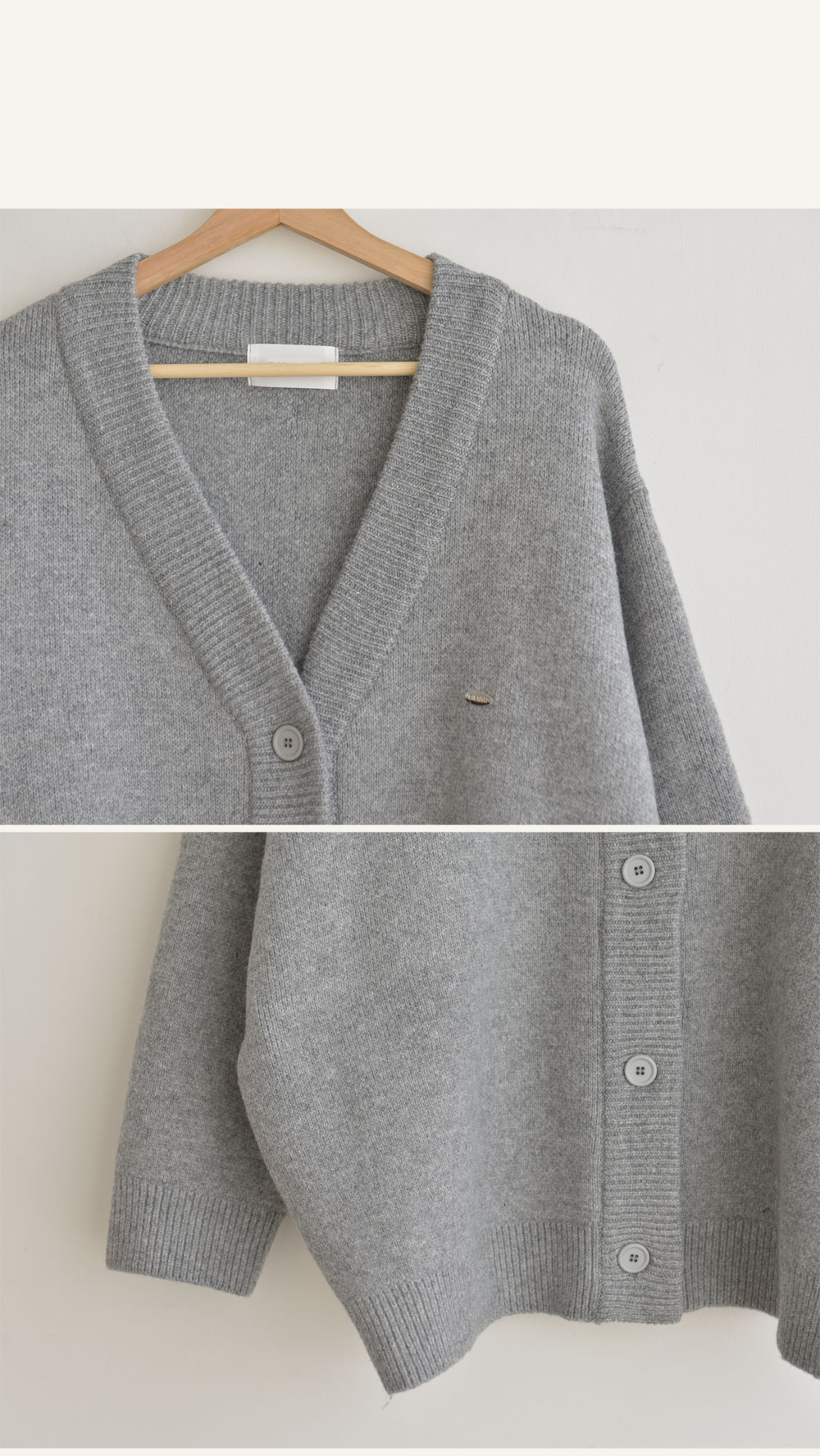 넥 라인을 따라 단추 라인까지 골지 짜임이 탄탄하게 들어가