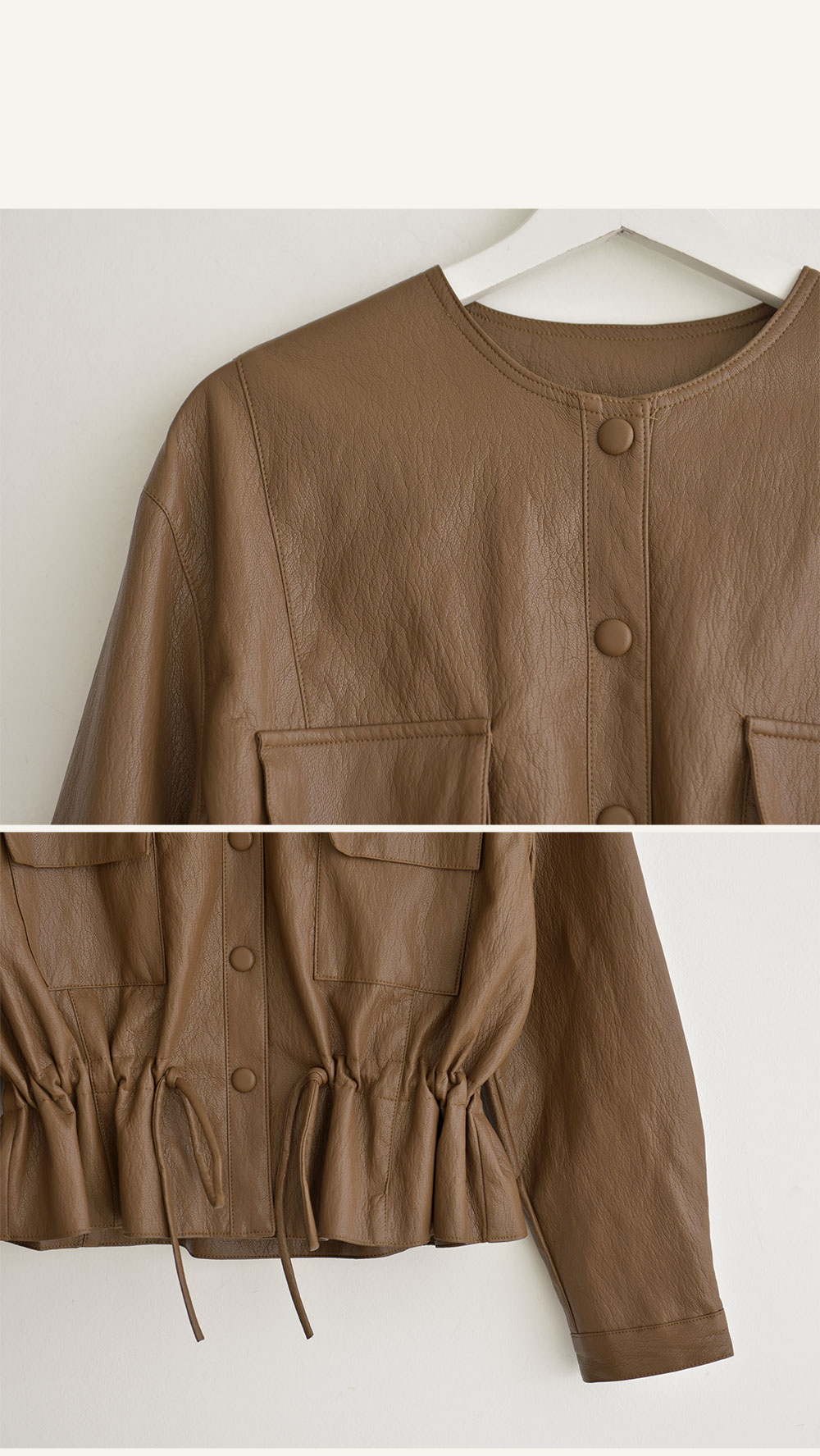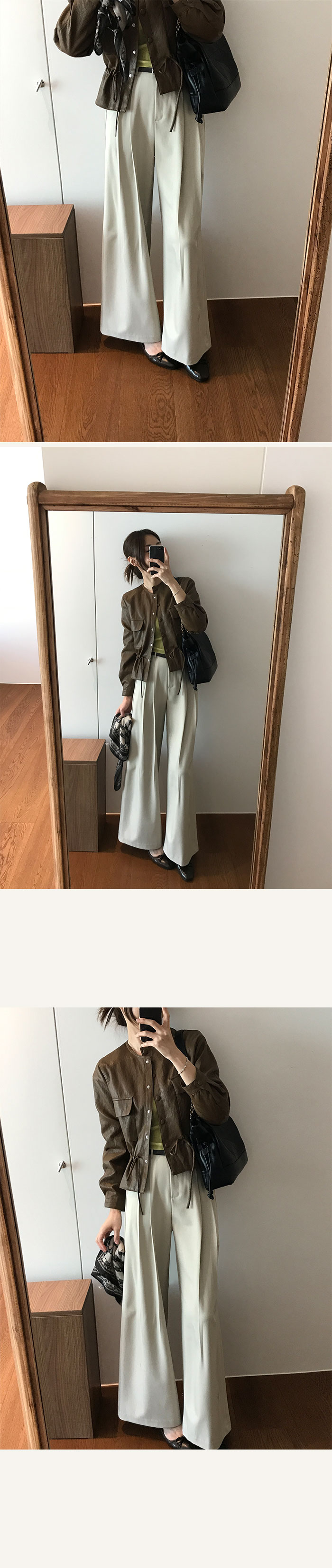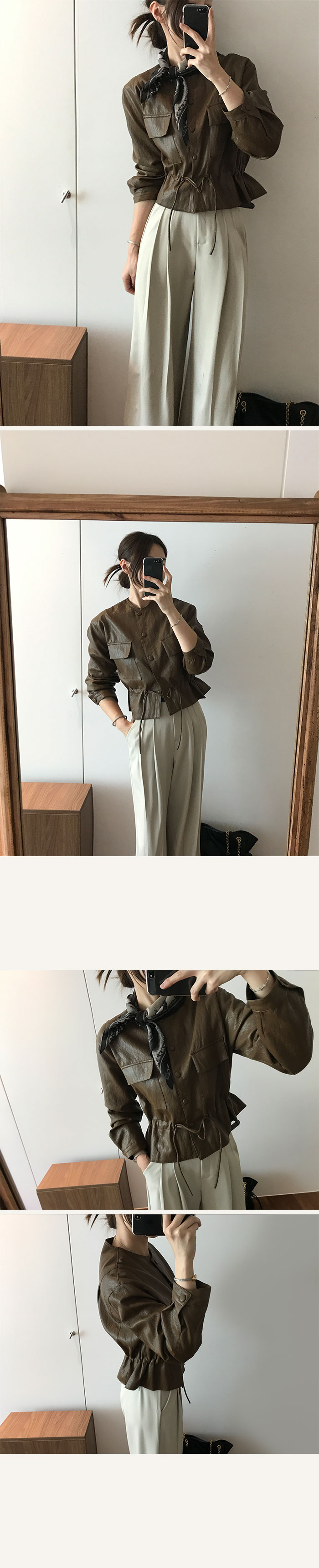 유연하면서 부드러운 레더 소재로 간절기에 착용하기 좋구요