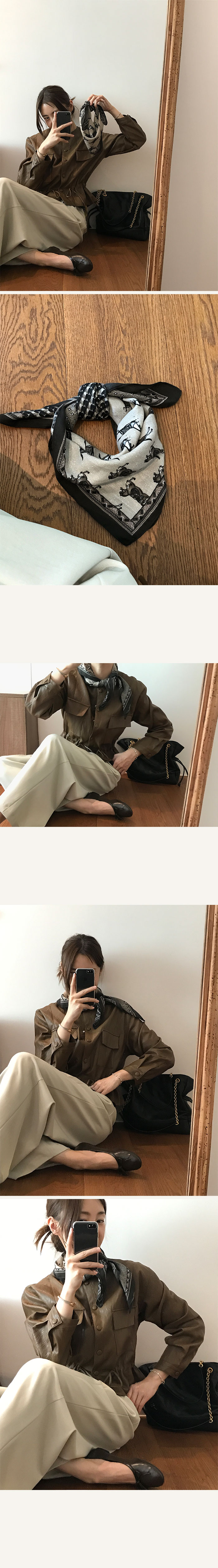 빈티지 무드의 스카프가 더해져 고급스러운 분위기 완성-