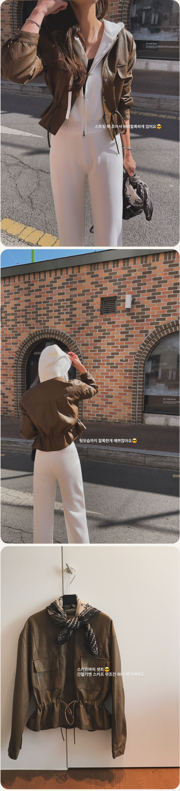 테사 스트링 레더자켓+스카프 SET