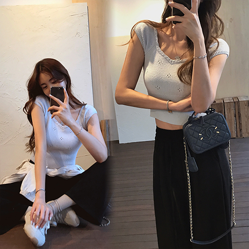 소매가 살짝 내려오는 캡소매디자인으로 어깨라인도 가녀려