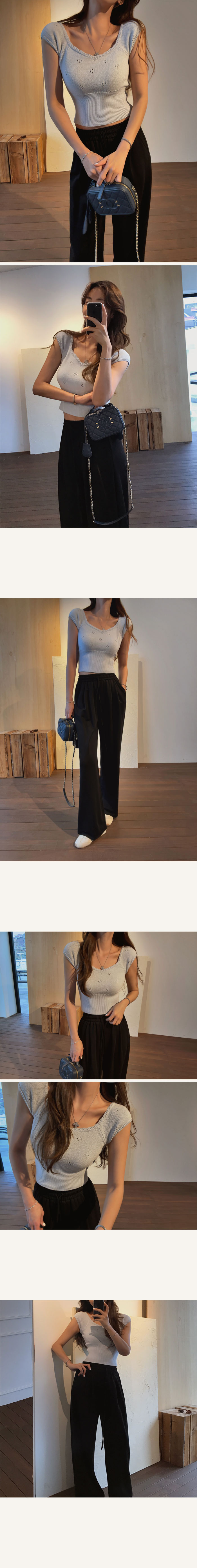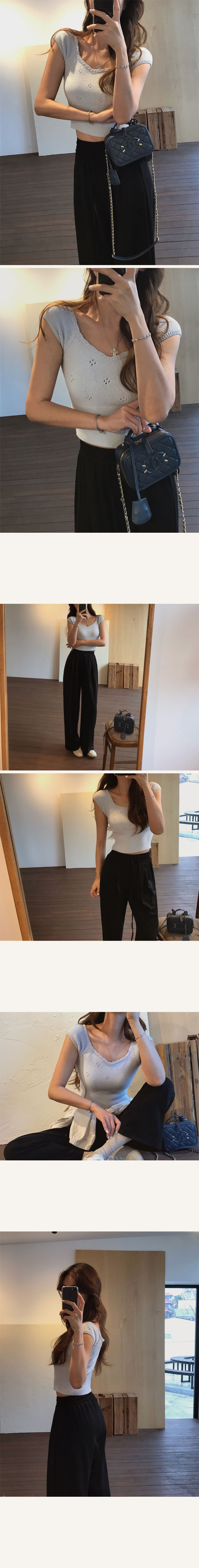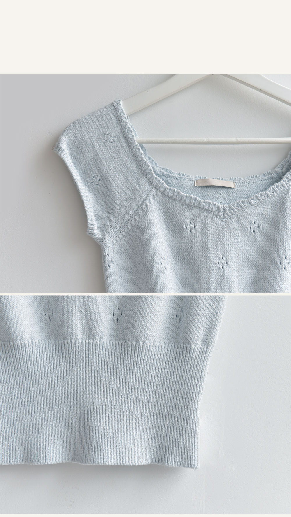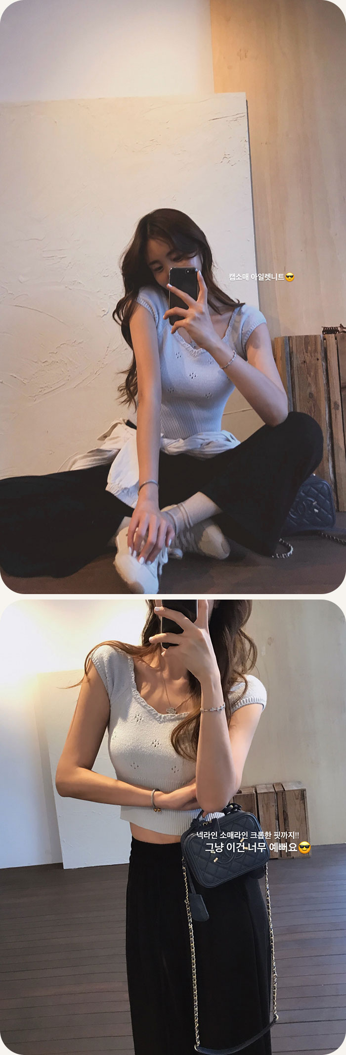 세미크롭기장으로 전체적인 비율이 좋아보이는 아일렛니트!
