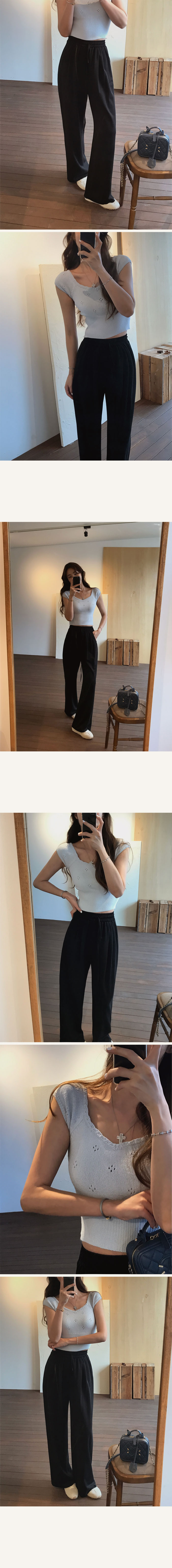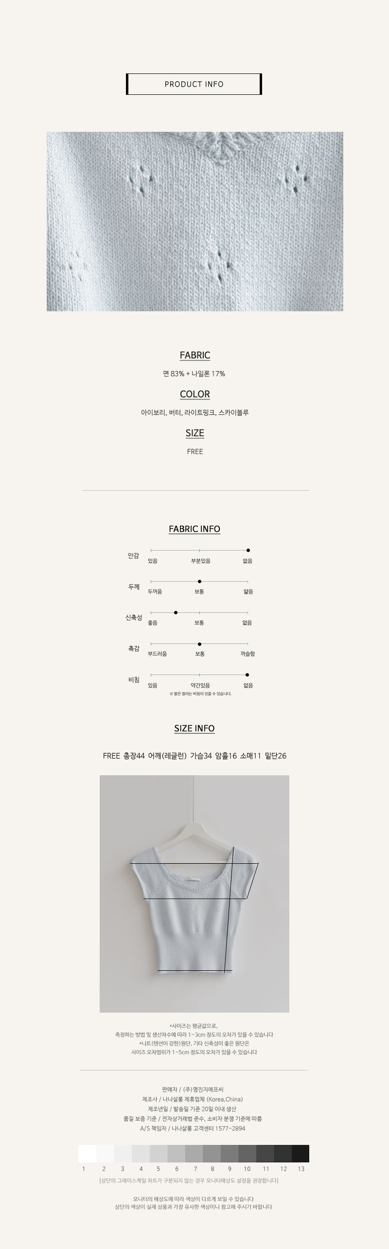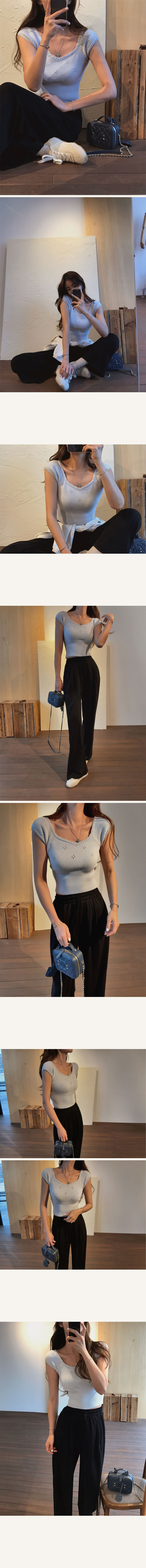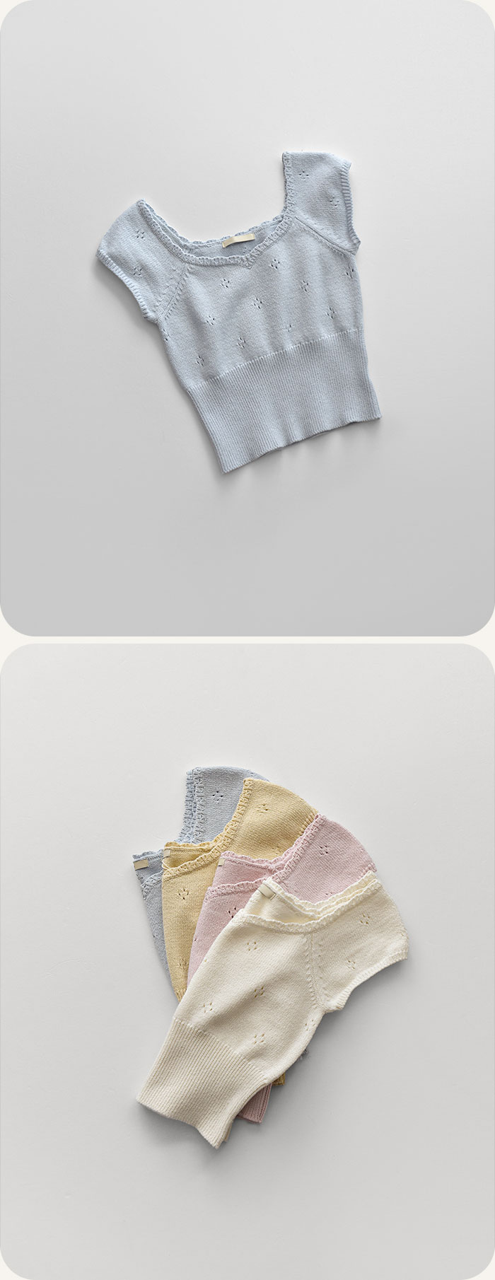 세미크롭기장으로 전체적인 비율이 좋아보이는 아일렛니트!