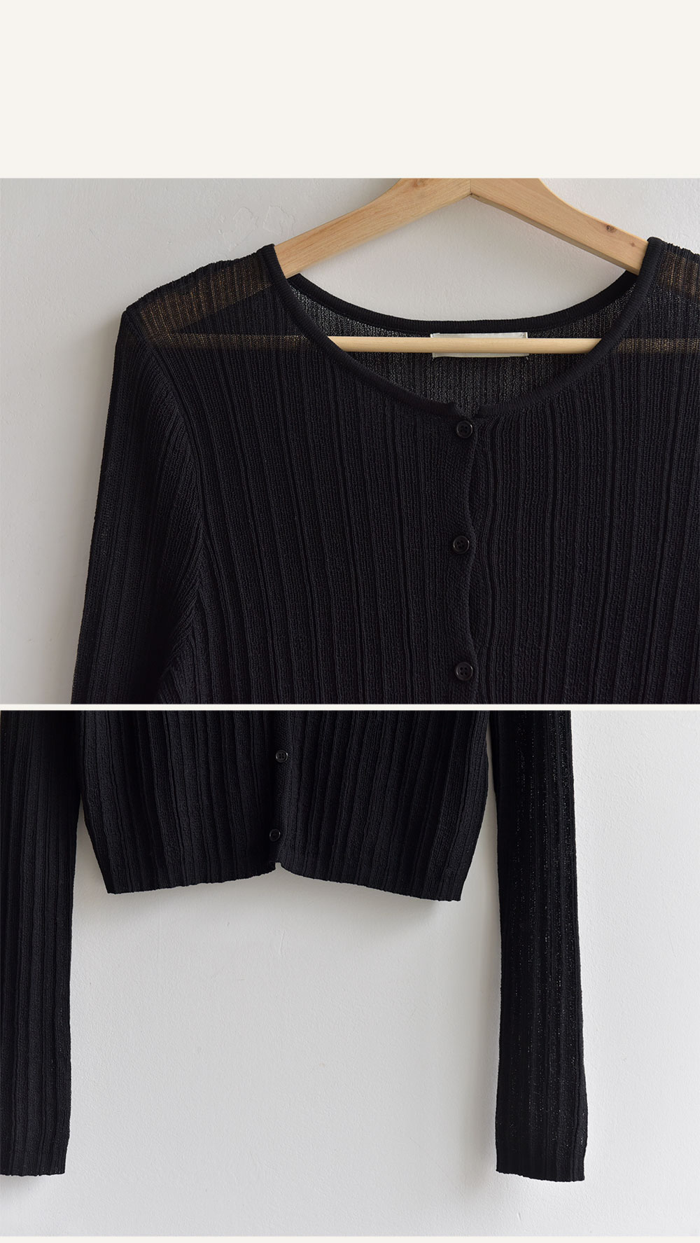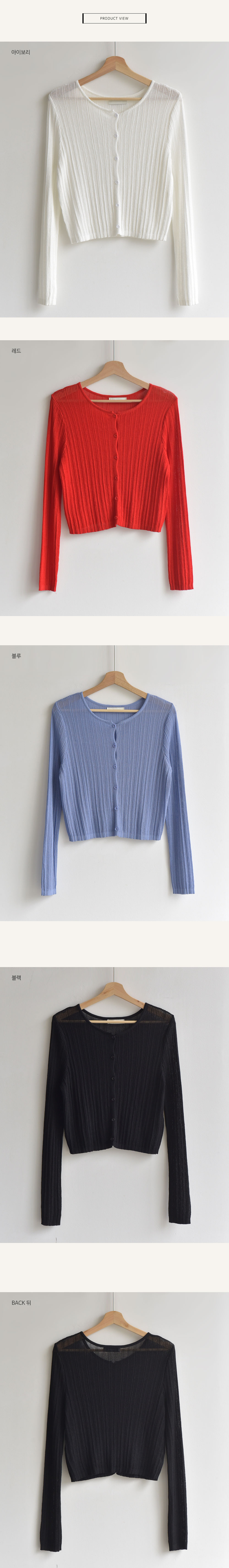 얼기설기한 짜임으로 은은하게 살결이 느껴지는 비침있는 얇은 가디건이라