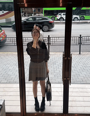- 코트와 후드베스트는 배색으로 들어가 일부러 연출한 듯, 두 아이템이 너무나 잘 어우러지면서 굉장히 세련되어 보이구요 후드넥이 달려있어 영한가 싶지만 롱기장의 코트가 주는 차분한 무드가 그 느낌을 살짝은 눌러줘 너무 괜찮았어요☆