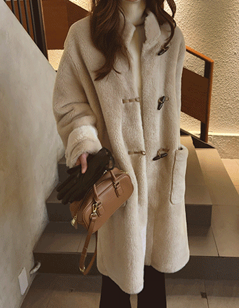 - 부드러운 결의 페이크 퍼로 포근하면서 따뜻하게 착용되는 코트예요 자칫 올드해 보일수도 있는 디자인이지만 후드넥으로 좀 더 영한 분위기가 들고 허리에 내장된 스트링을 조여주시면 잘록한 라인으로 완성되여요