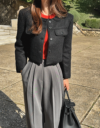 - 격식있게, 또는 캐주얼하게 다양한 연출이 가능한 자켓 이예요 힙을 살짝 덮어주는 기장으로 크롭자켓들과 비교했을 때 조금 더 트렌디해 보이는 느낌이구요 붙은 하의와 매치했을때도 부담스럽다는 느낌이 없어 체형커버에도 좋을것 같아요☆