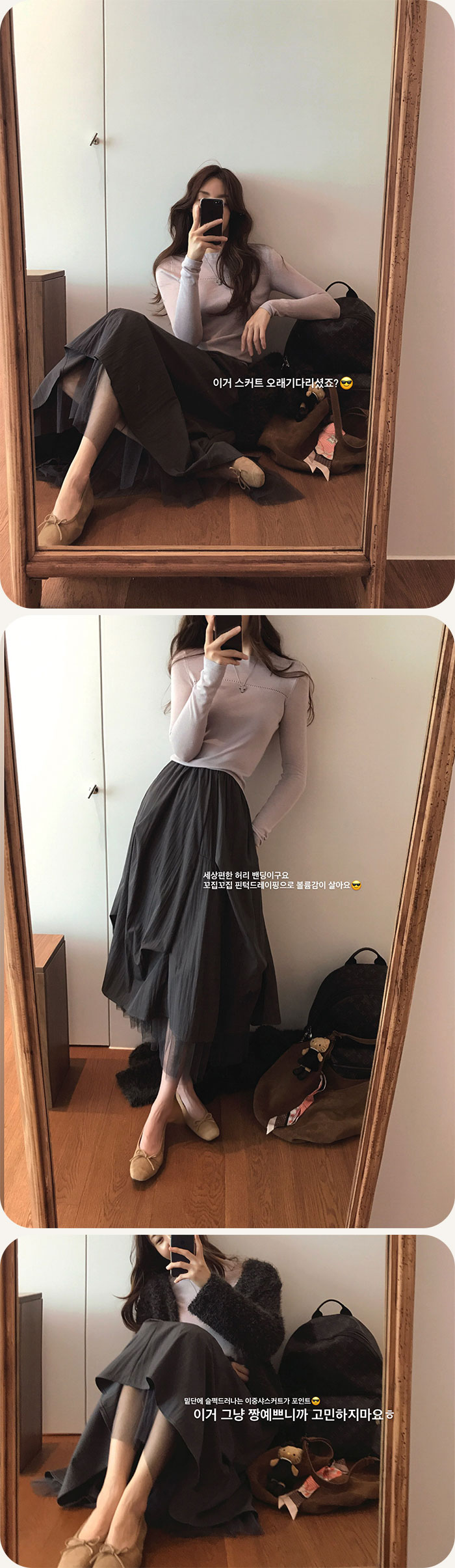 핏감이 매력적이구요 은은하게 바디라인이 드러나니 심심하지 않아요