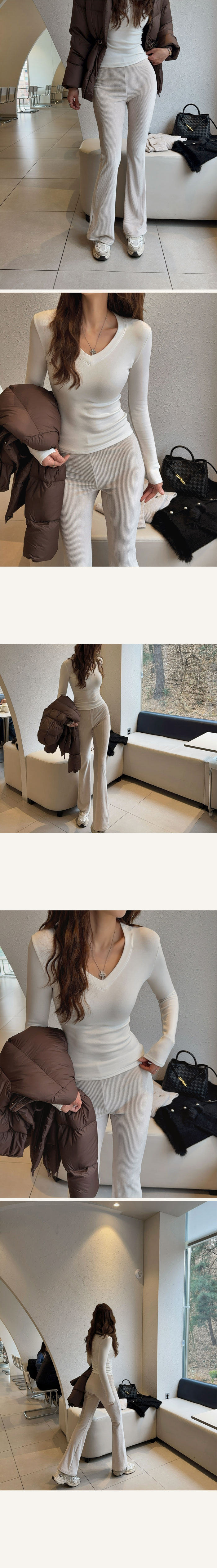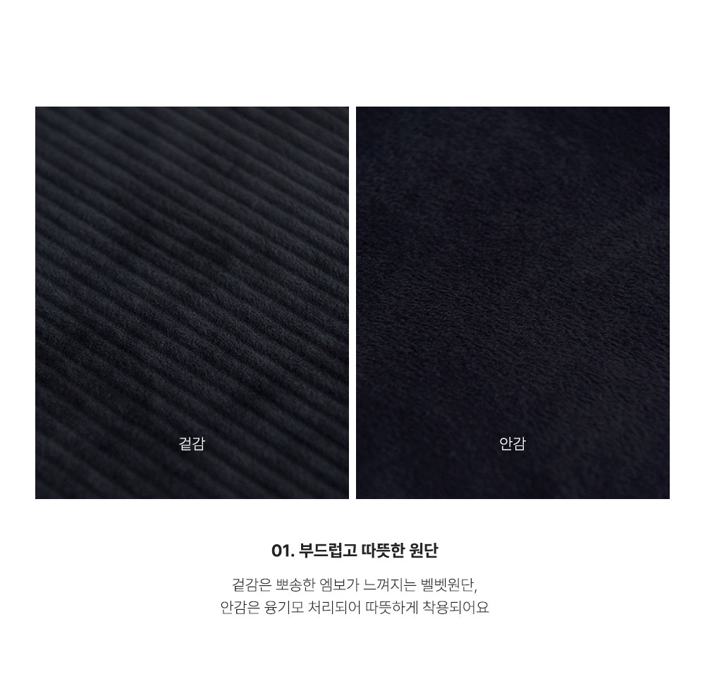 해주는 팬츠예요 겉은 엠보가 잘 느껴지는 골지에 뽀송하게 벨벳의 결감도 잘