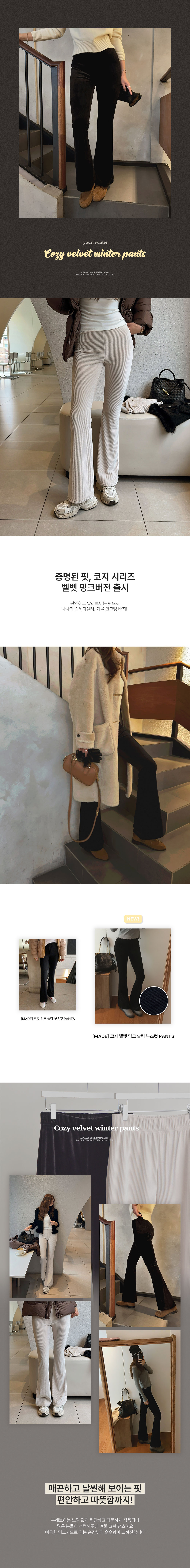 [MADE] 코지 벨벳 밍크 슬림 부츠컷 PANTS (숏/롱)