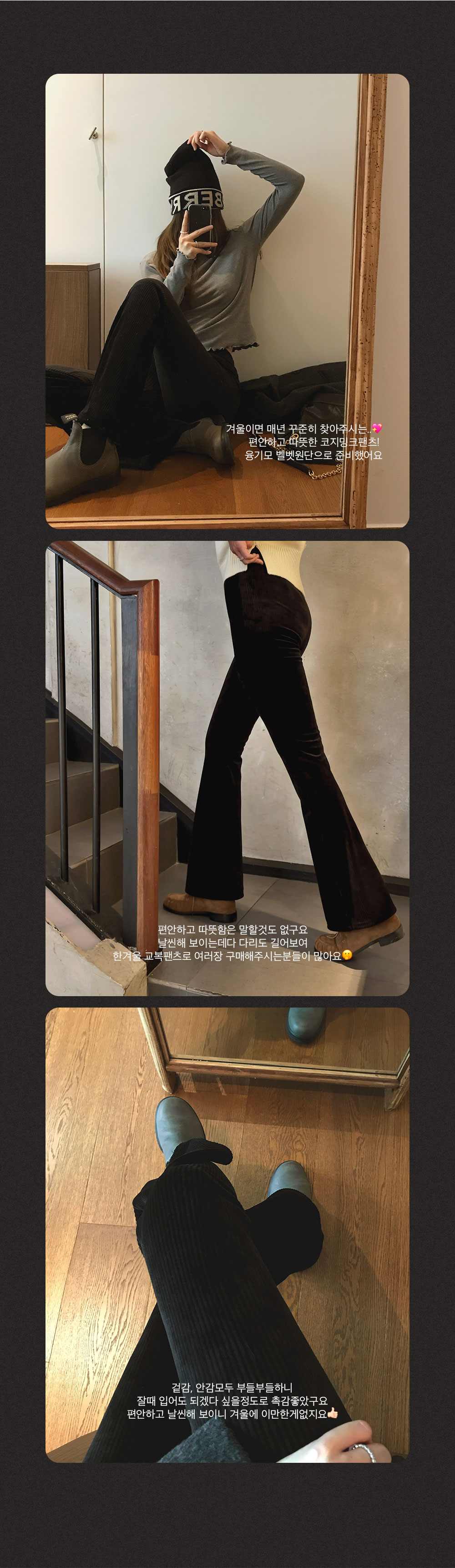 분들이 아주 많은 바지인 만큼, 이번 벨벳바지도 눈여겨 봐주셨으면 좋겠어요