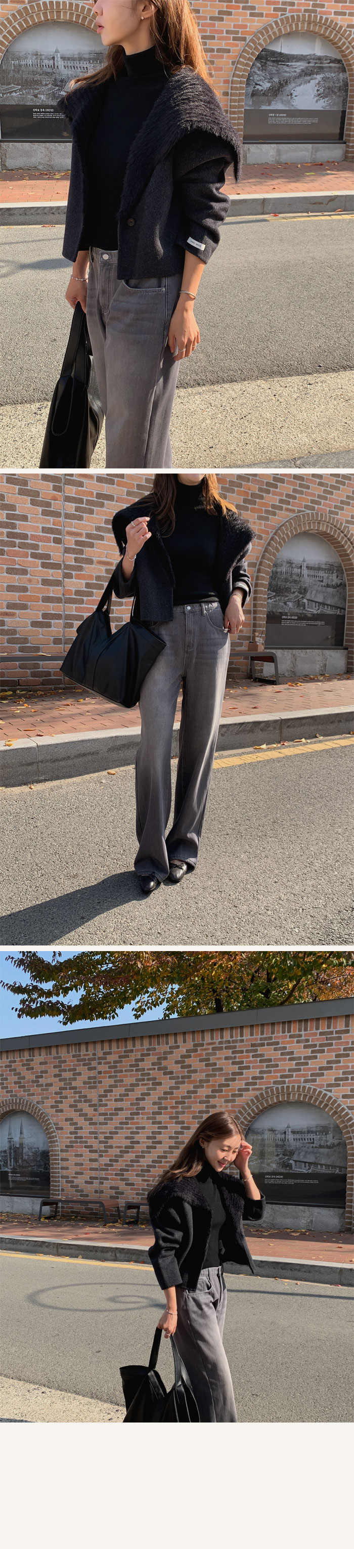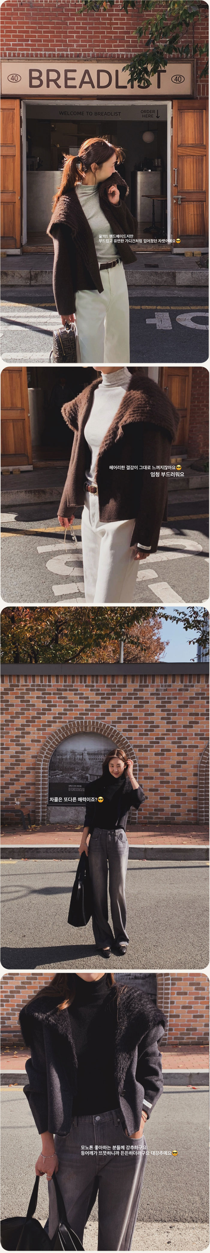 넥라인만 헤어리한 소재로 보온성은 더더욱 챙겨주면서